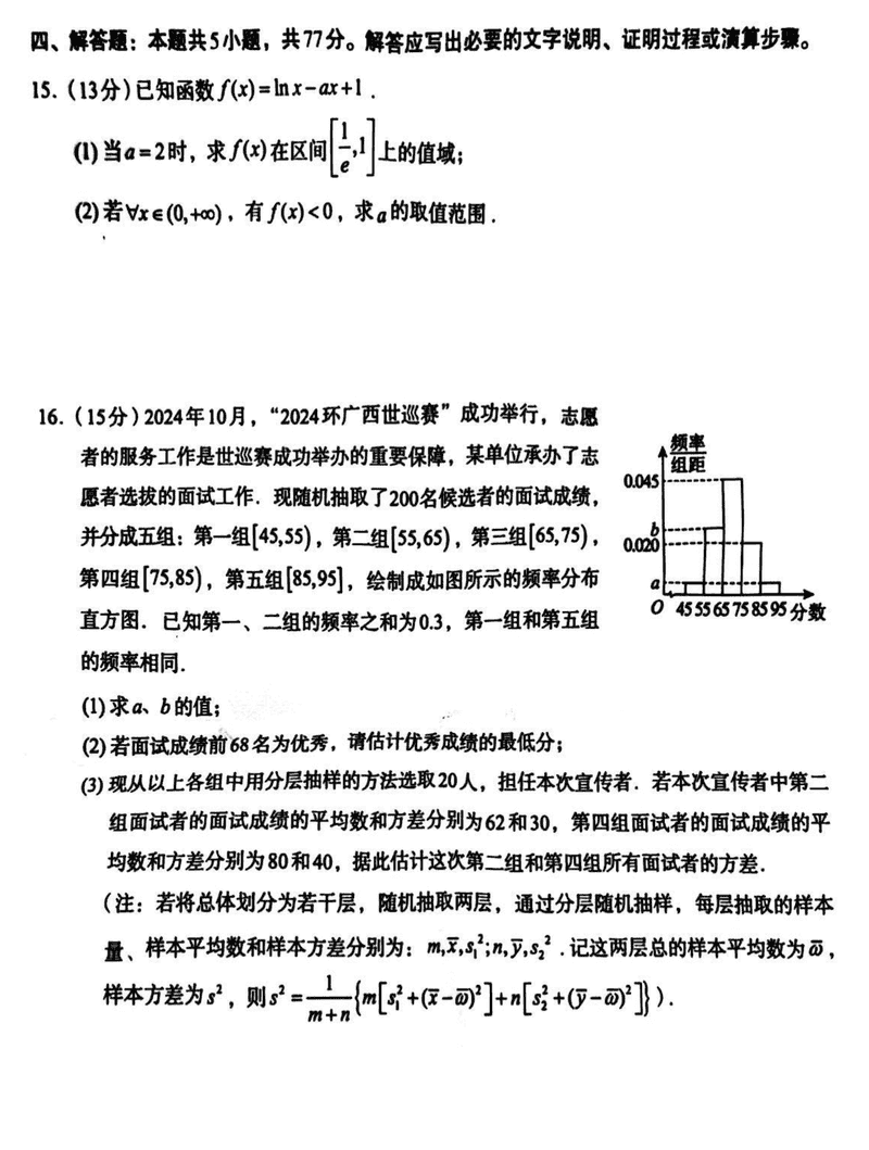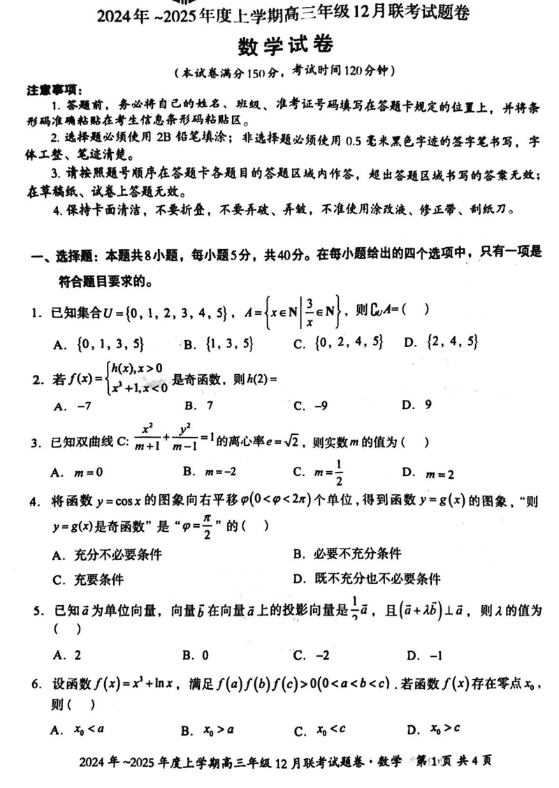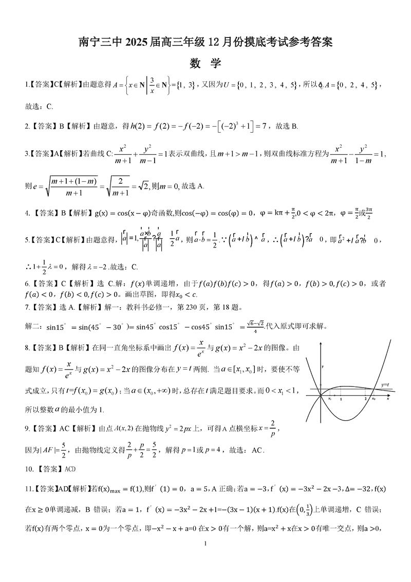 广西邕衡教育名校联盟2025届高三年级12月联考数学试题及答案
