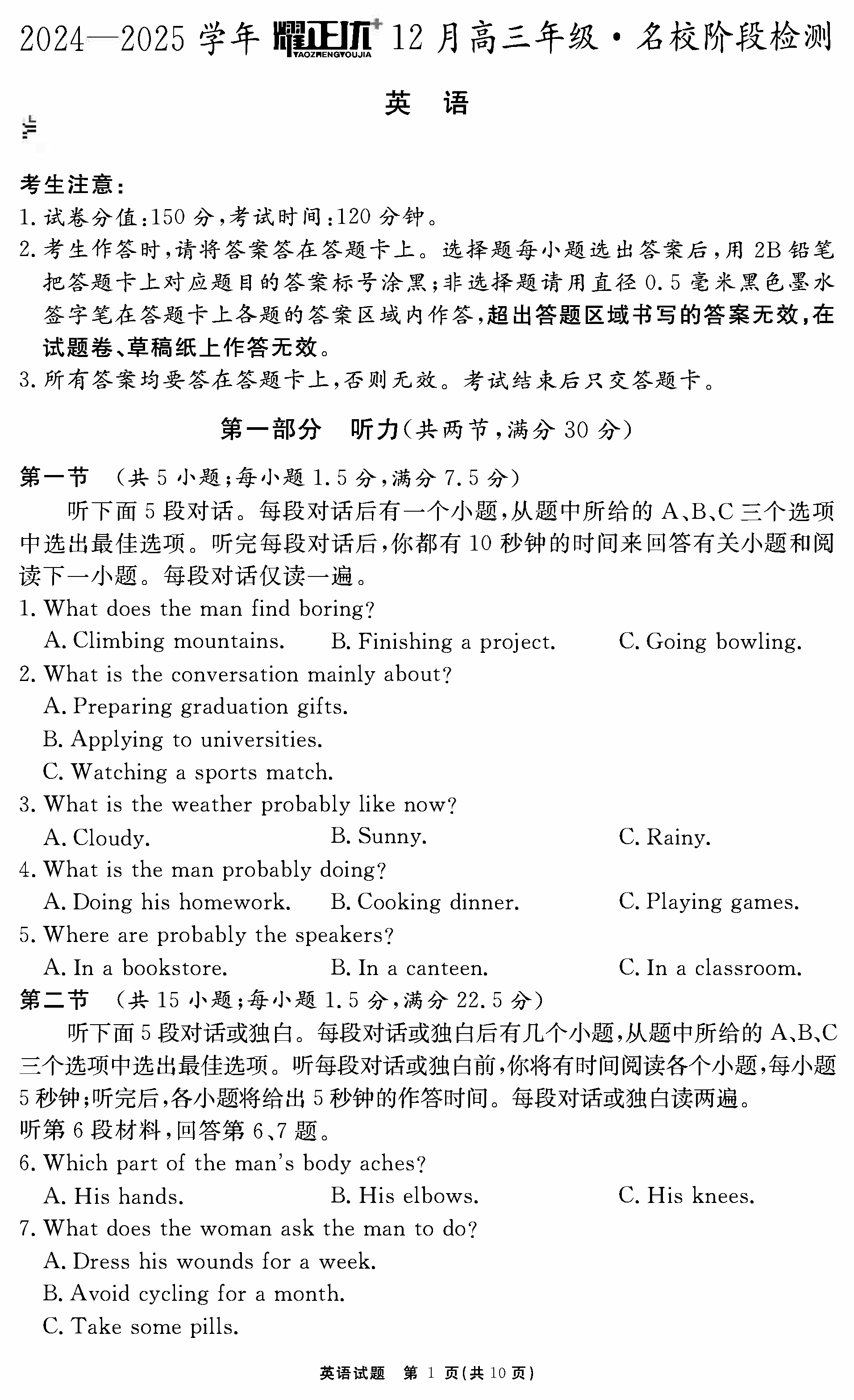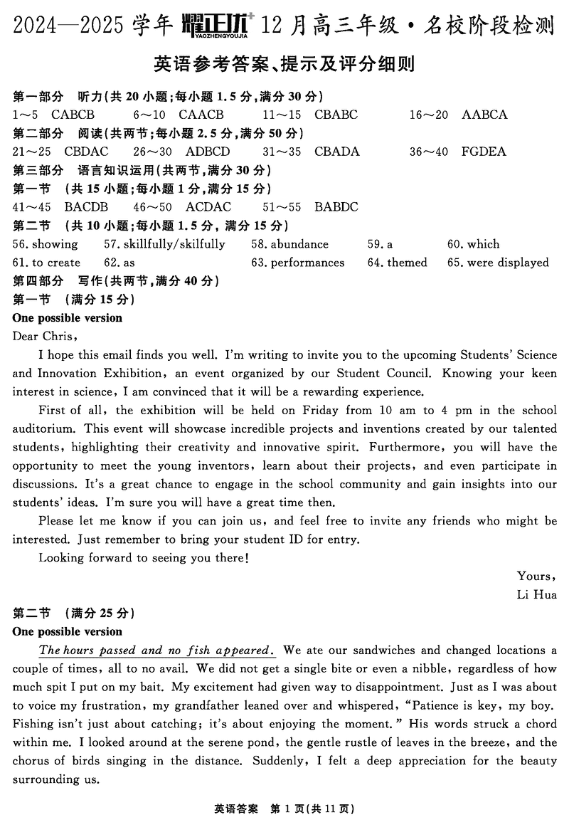 安徽2024-2025学年耀正优12月高三名校阶段检测英语考试已于近日开考,为方便考生考后及时查看考试情况,查漏补缺、弥补不足,本文整理了试题答案解析相关信息!