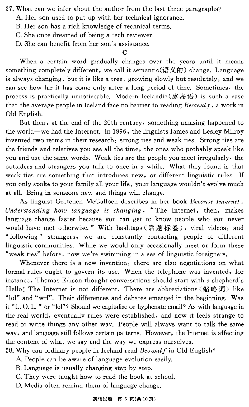安徽 英语试题