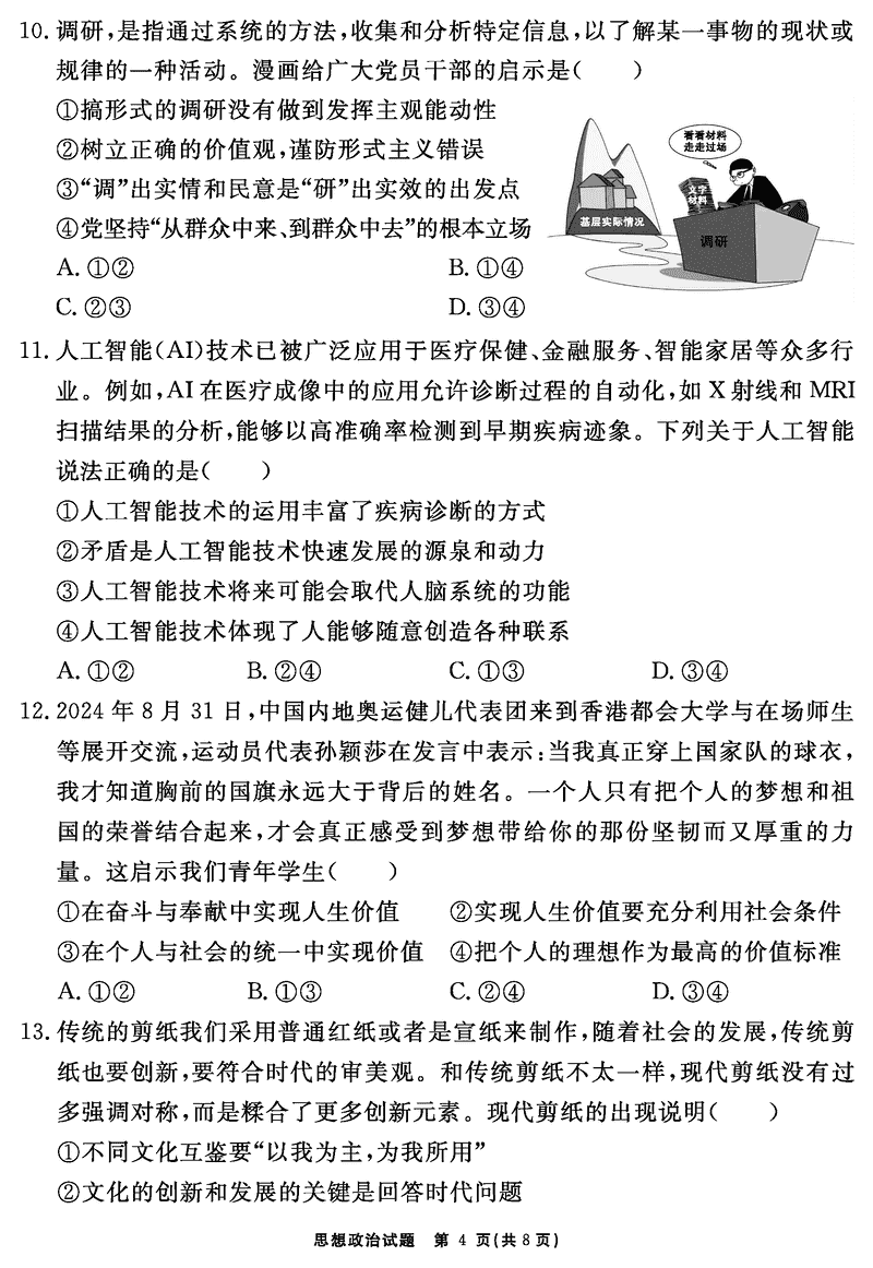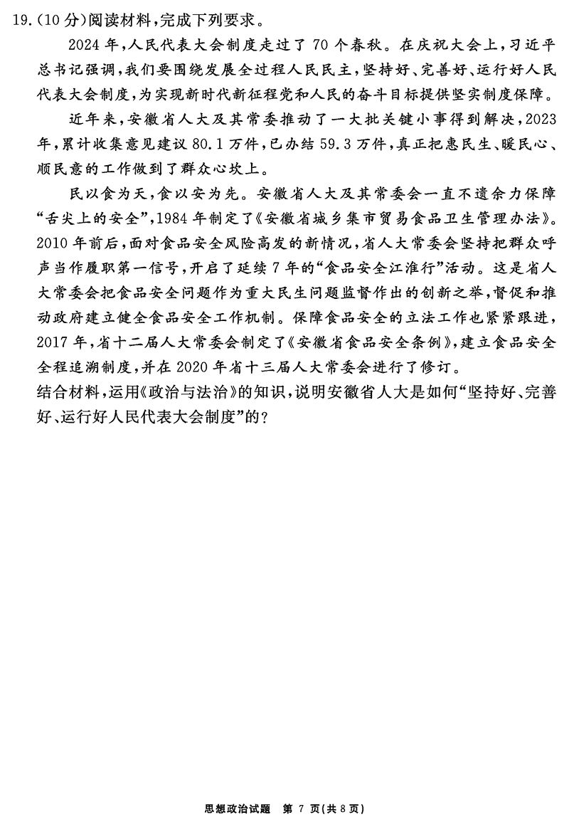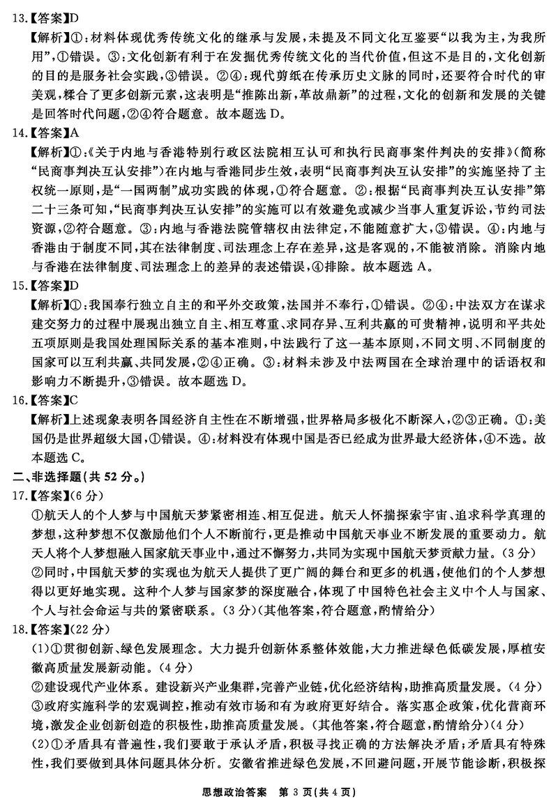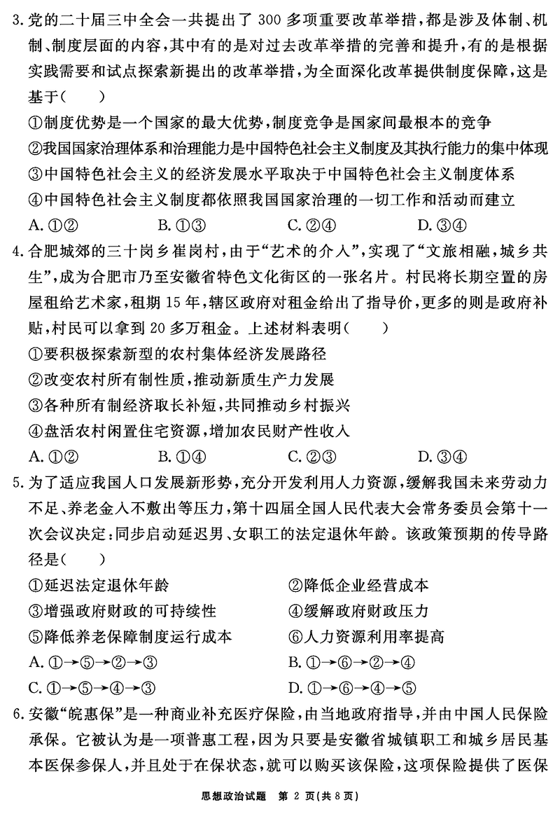 安徽2024-2025学年耀正优12月高三名校阶段检测政治试题及答案