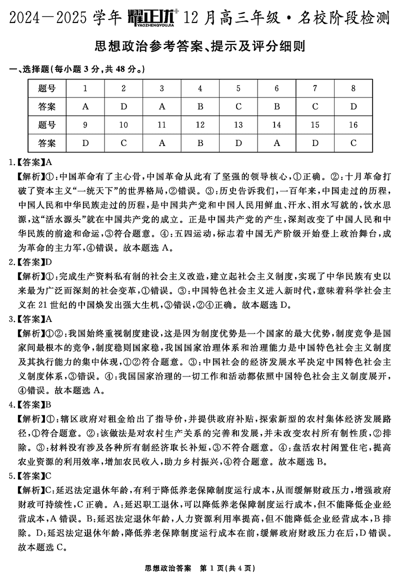 安徽2024-2025学年耀正优12月高三名校阶段检测政治考试已于近日开考,为方便考生考后及时查看考试情况,查漏补缺、弥补不足,本文整理了试题答案解析相关信息!