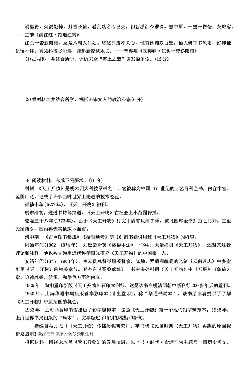 湖南 文综试题