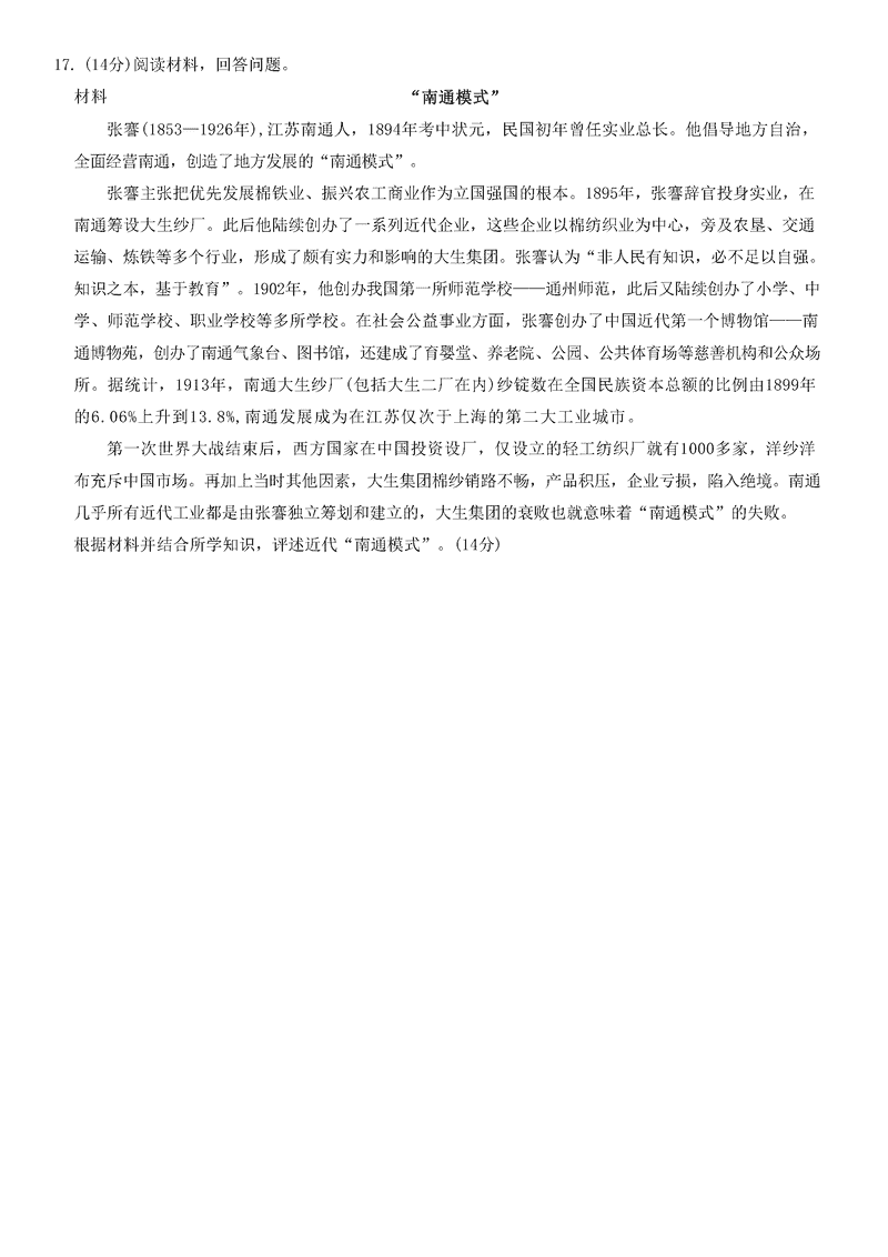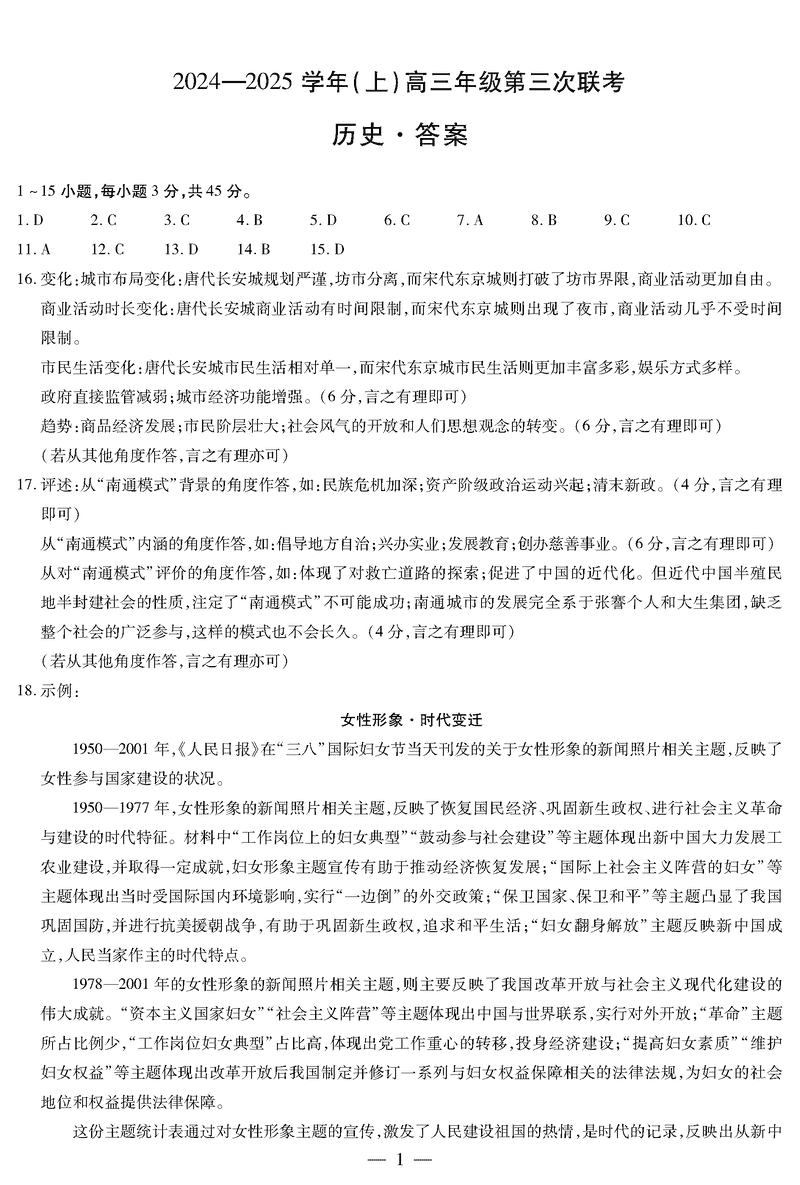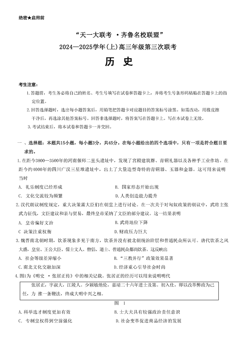 山东齐鲁名校联盟天一大联考2024年12月高三第三次联考历史试题及答案