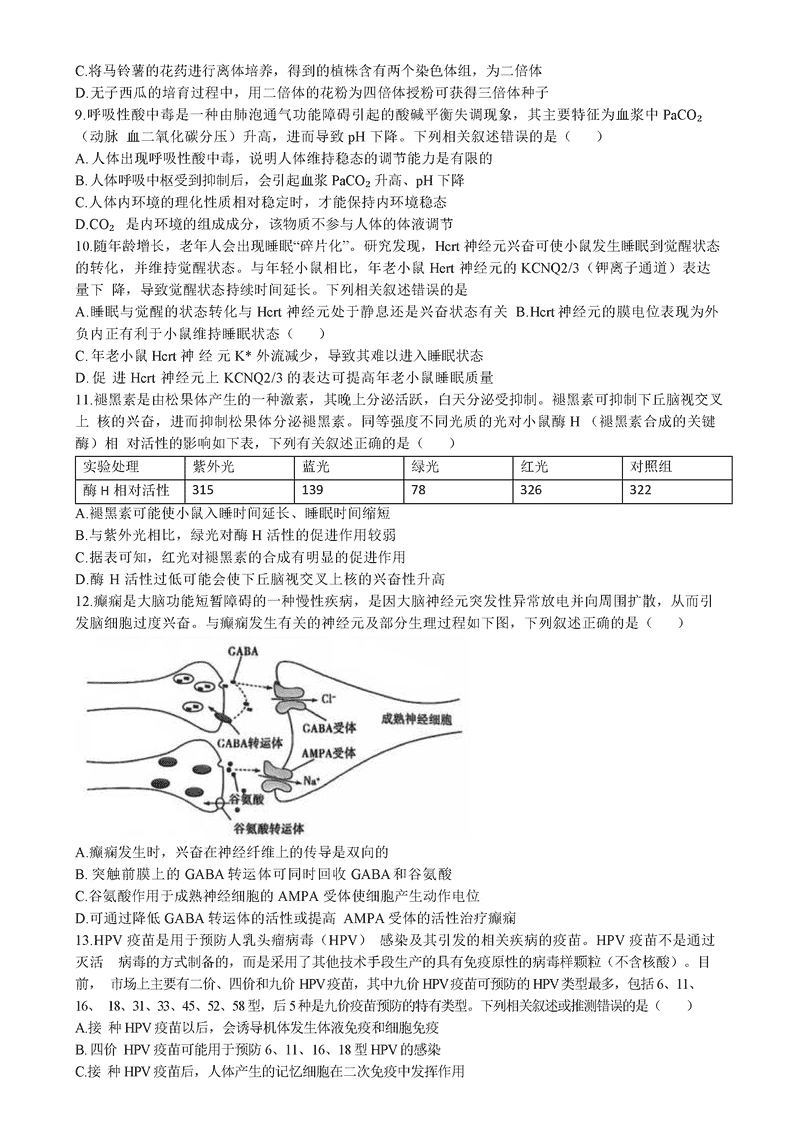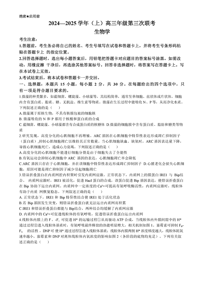 山东齐鲁名校联盟天一大联考2024年12月高三第三次联考生物试题及答案