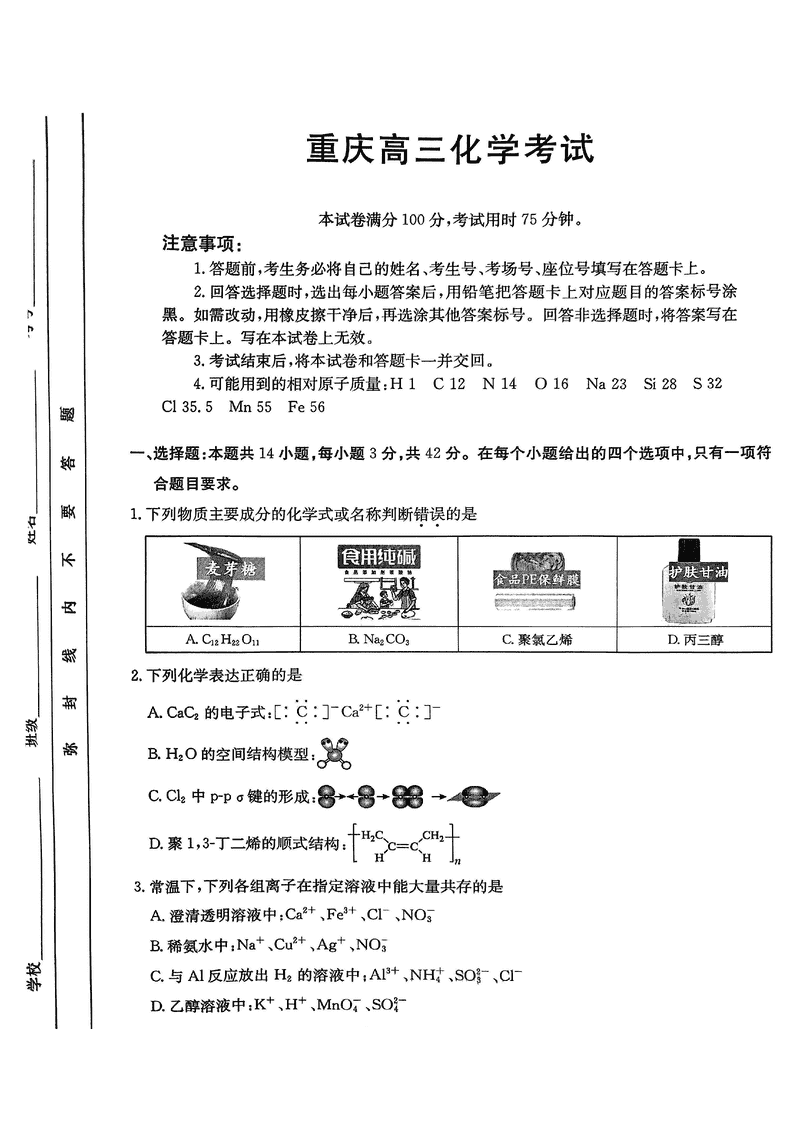 重庆好教育联盟2025届高三12月金太阳联考化学考试已于近日开考,为方便考生考后及时查看考试情况,查漏补缺、弥补不足,本文整理了试题答案解析相关信息!