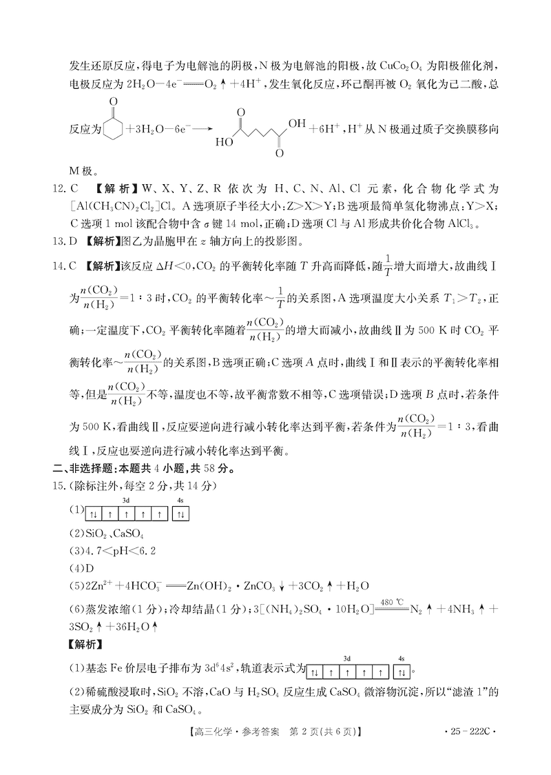 重庆好教育联盟2025届高三12月金太阳联考化学试题及答案