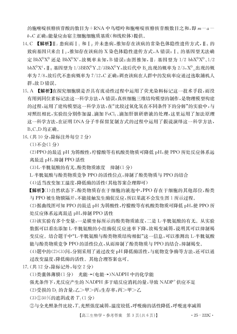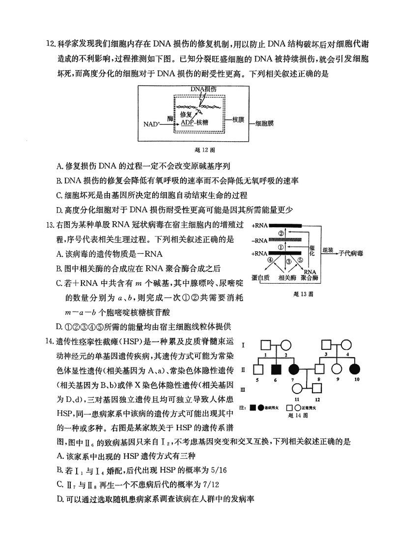重庆好教育联盟2025届高三12月金太阳联考生物试题及答案