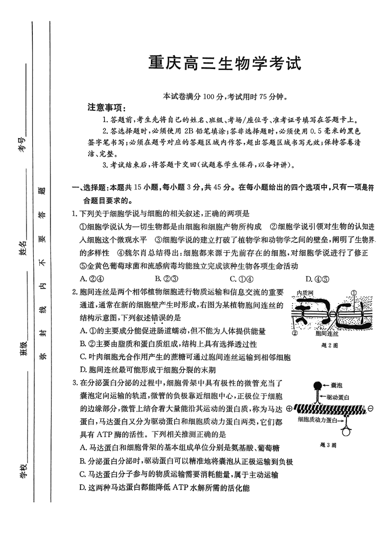 重庆好教育联盟2025届高三12月金太阳联考生物考试已于近日开考,为方便考生考后及时查看考试情况,查漏补缺、弥补不足,本文整理了试题答案解析相关信息!