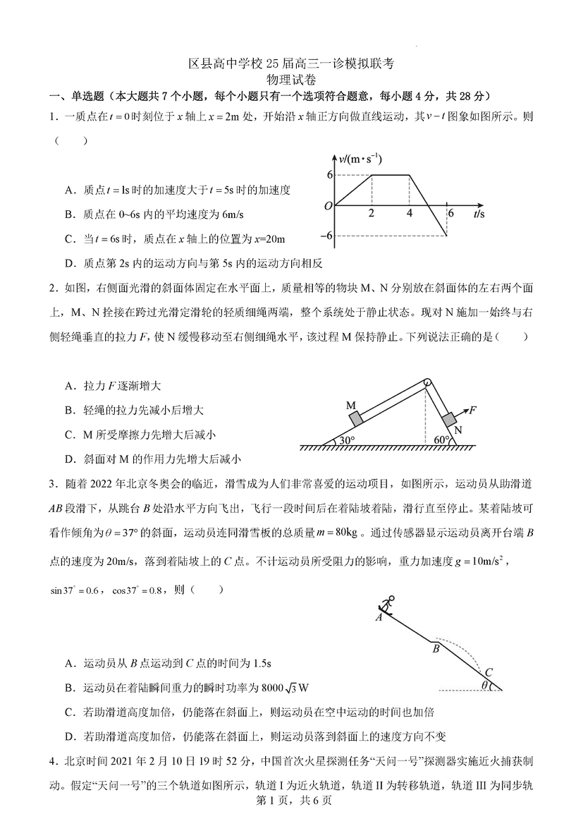 眉山市区县高中2025届高三上学期一诊模拟联考物理试题及答案