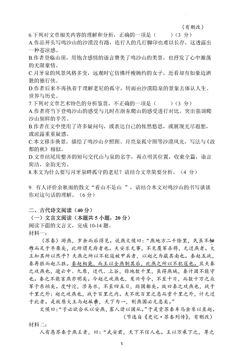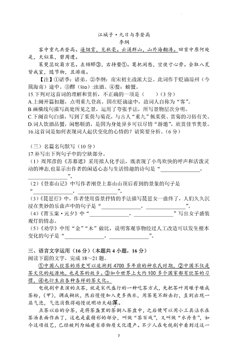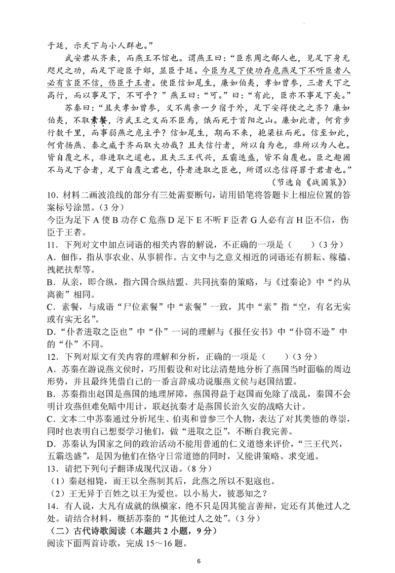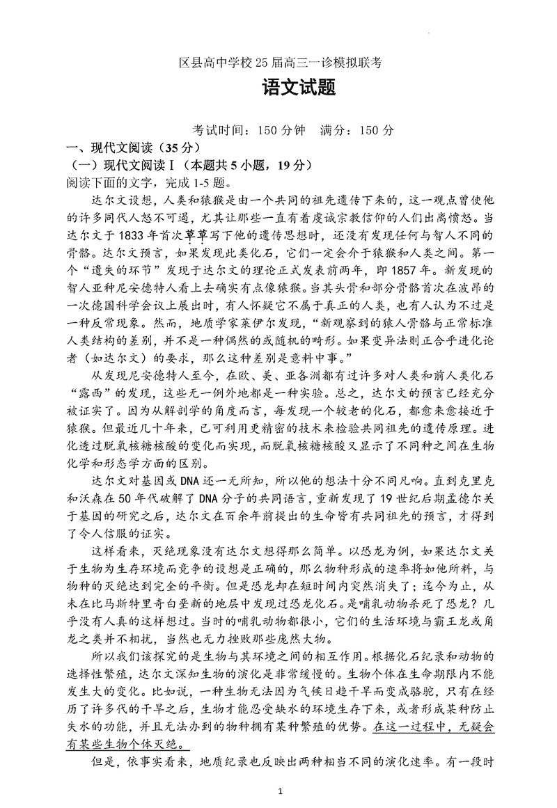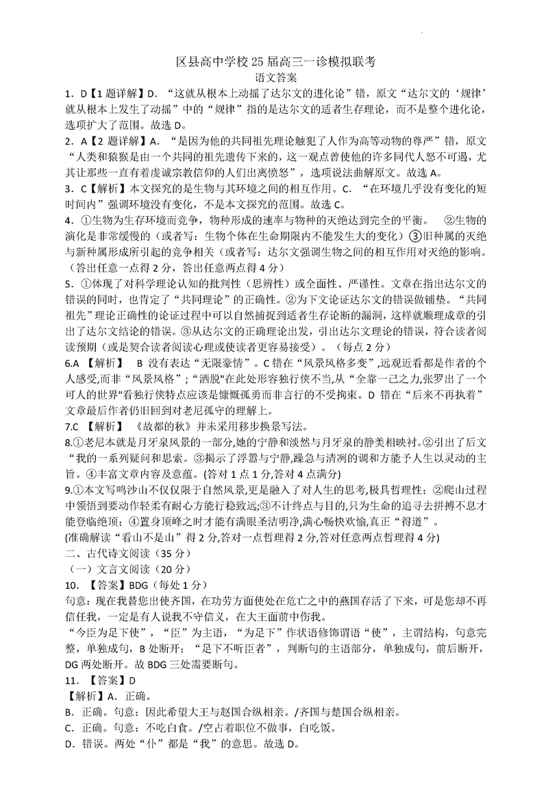 眉山市区县高中2025届高三上学期一诊模拟联考语文试题及答案