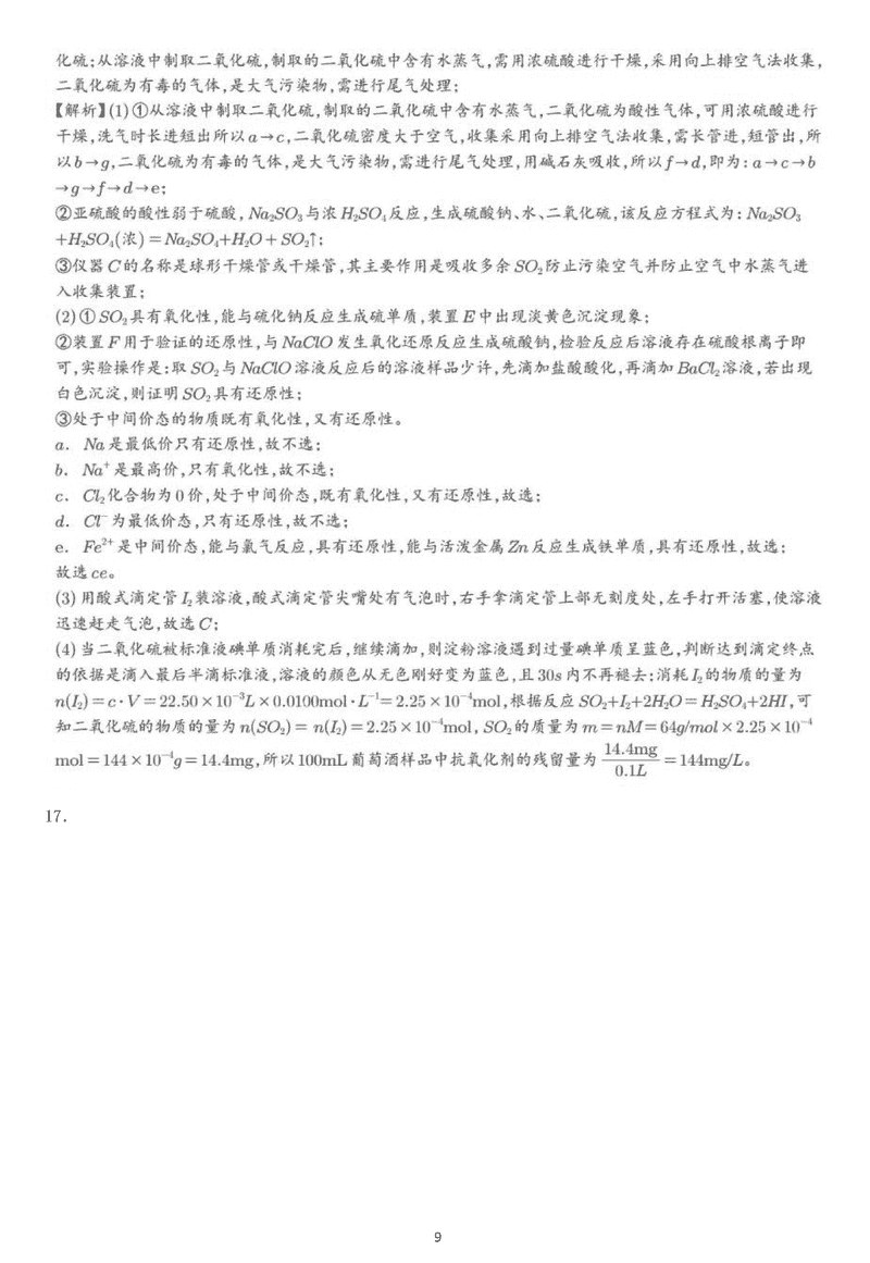 化学试题及答案解析