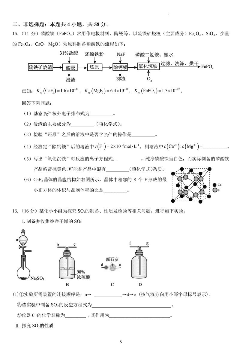 眉山市区县高中2025届高三上学期一诊模拟联考化学试题及答案