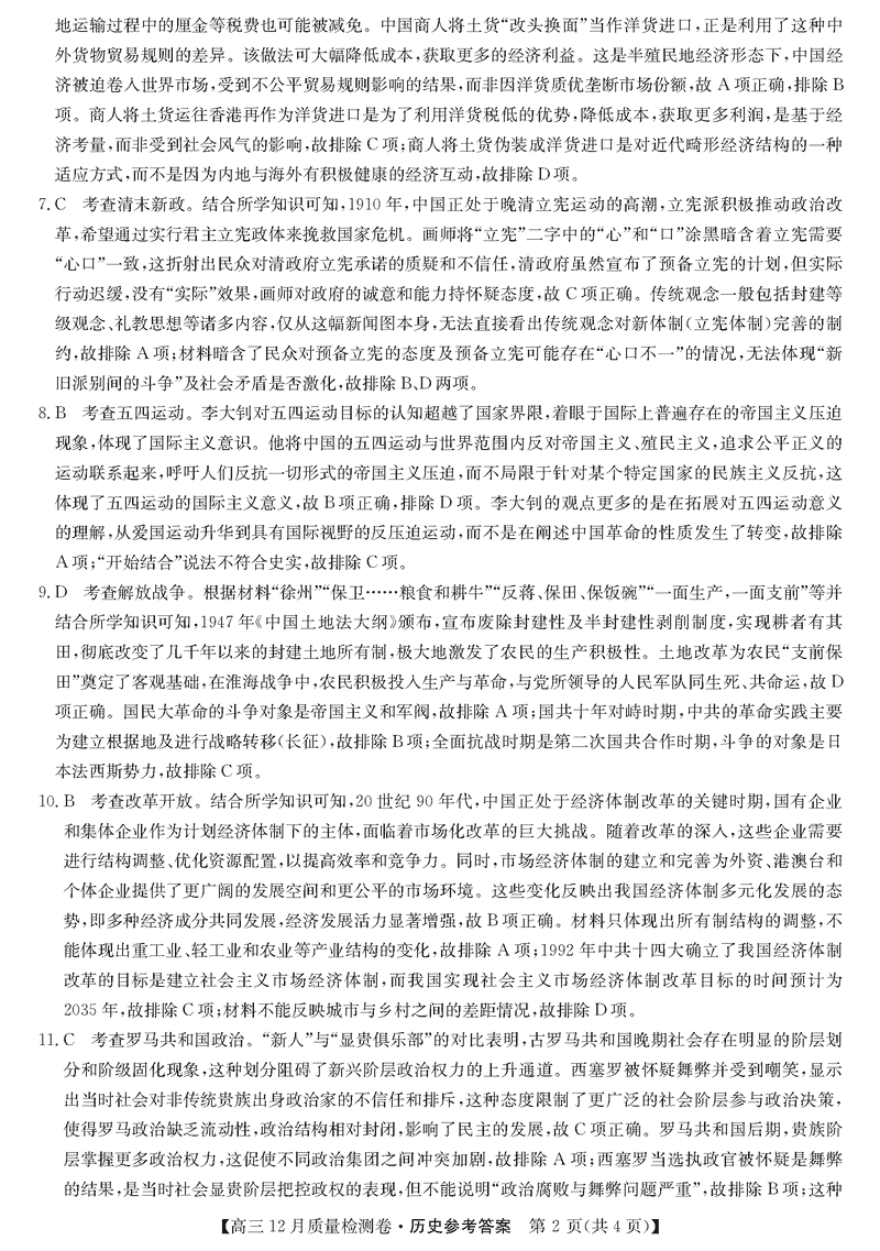 山西三晋卓越联盟2024年12月高三质检历史试题及答案