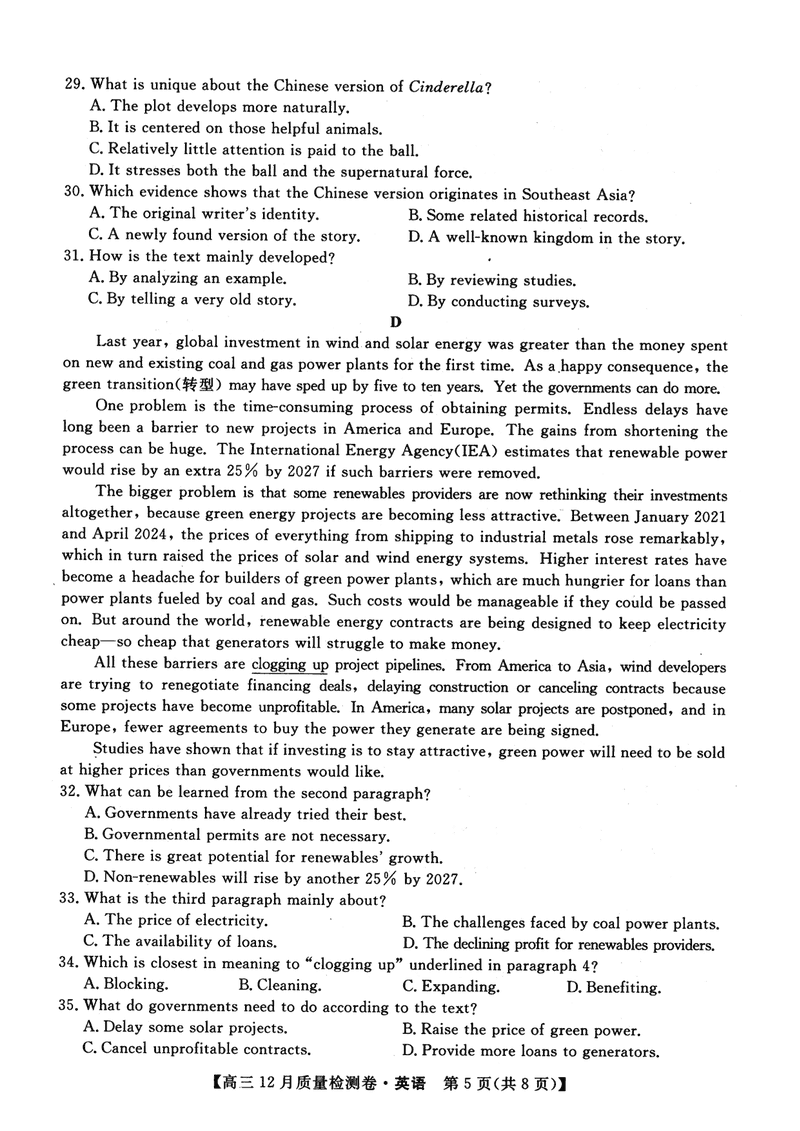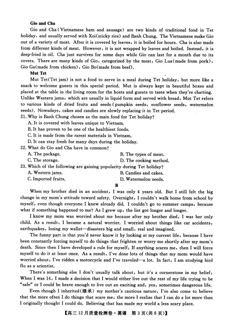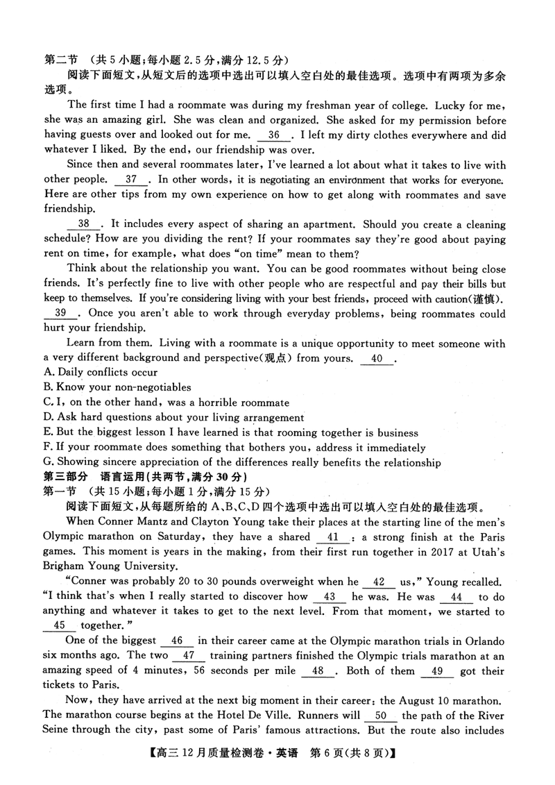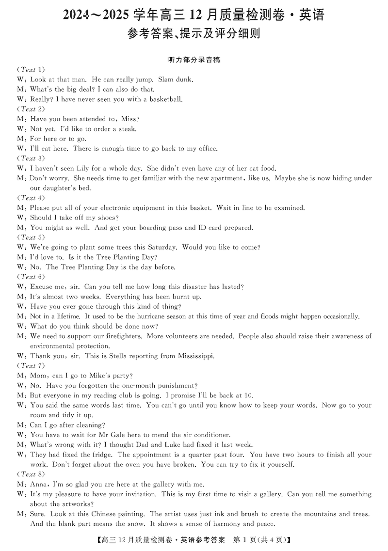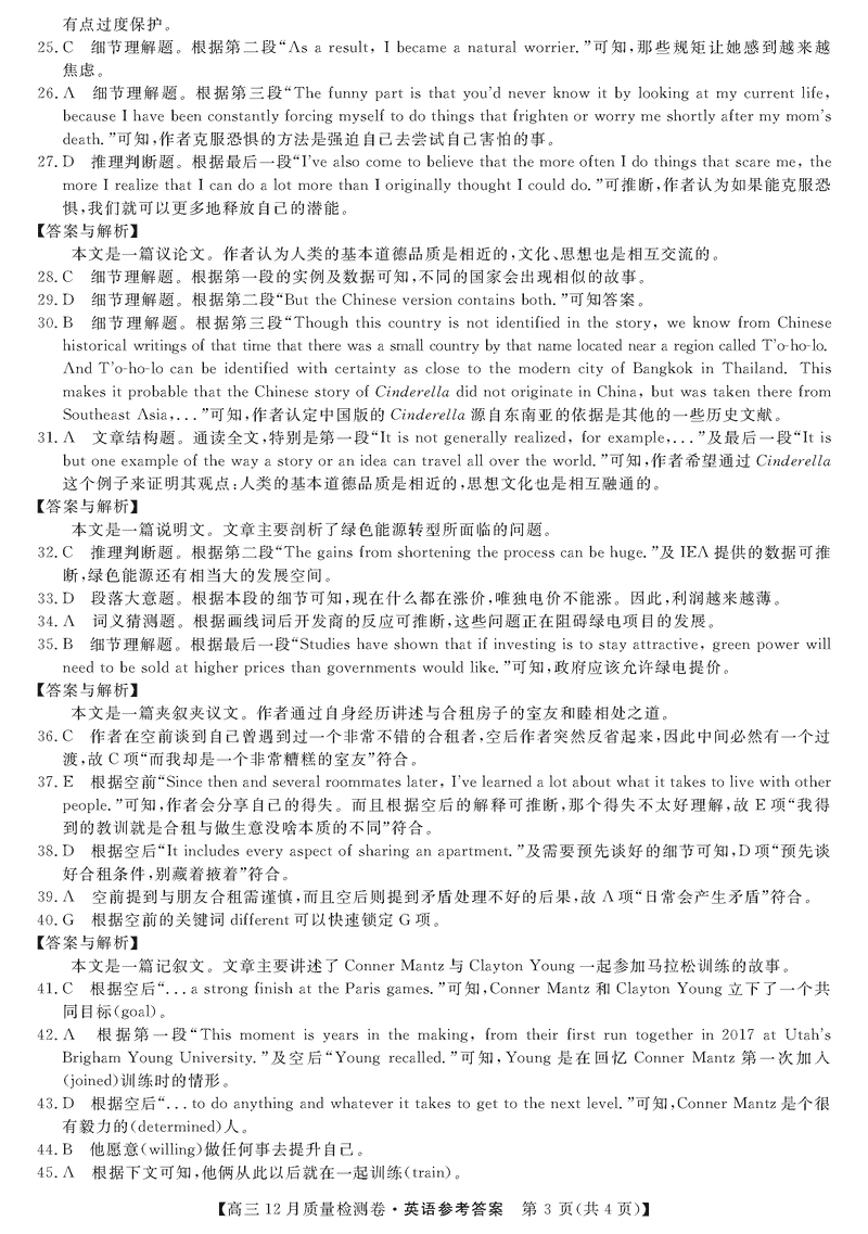 山西三晋卓越联盟2024年12月高三质检英语试题及答案