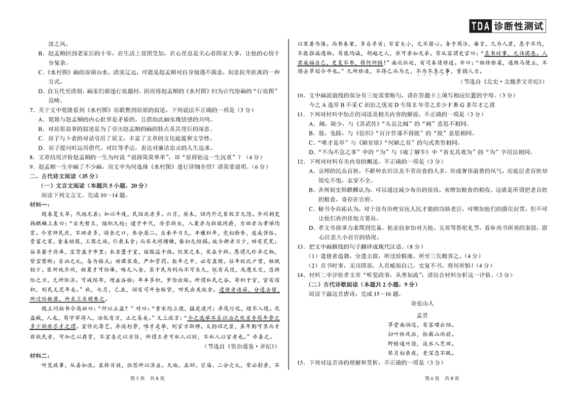 中学生标准学术能力诊断性测试(TDA)2024-2025学年高三上12月测试语文考试已于近日开考,为方便考生考后及时查看考试情况,查漏补缺、弥补不足,本文整理了试题答案解析相关信息!