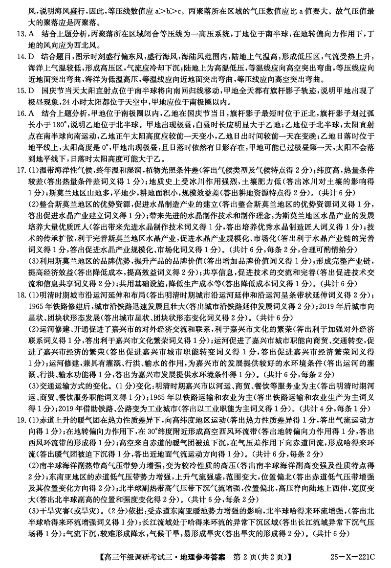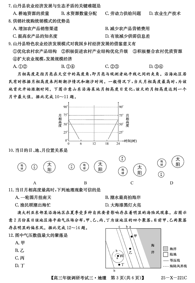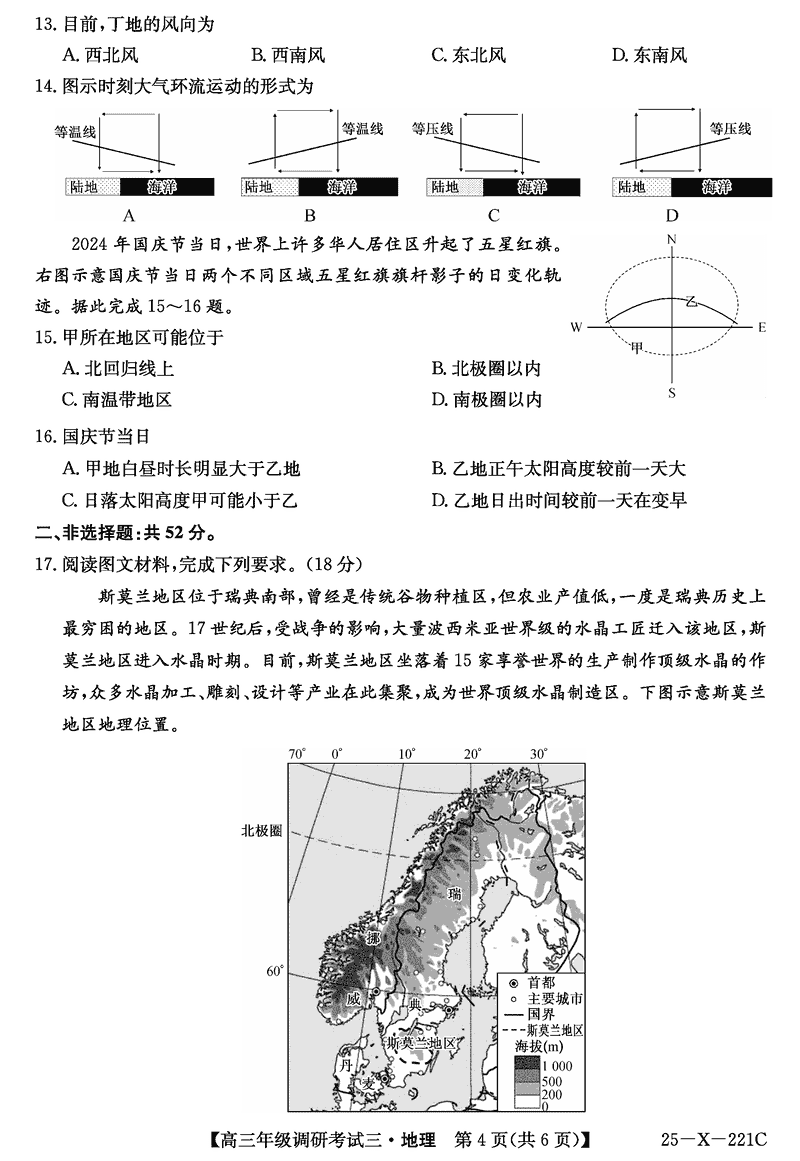 河南省TOP二十名校2025届高三上学期调研(三)地理试题及答案