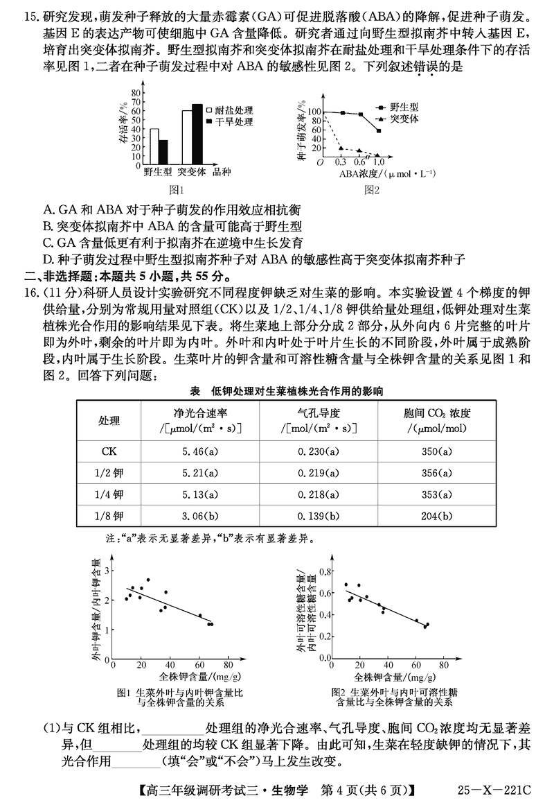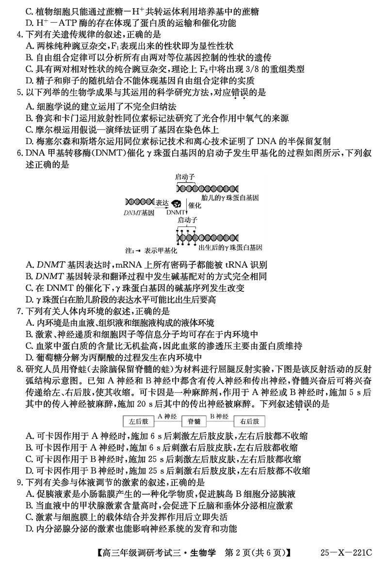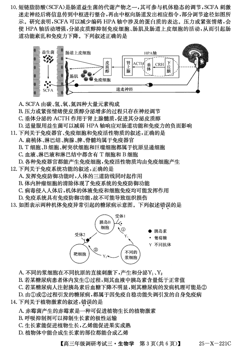 河南省TOP二十名校2025届高三上学期调研(三)生物试题及答案