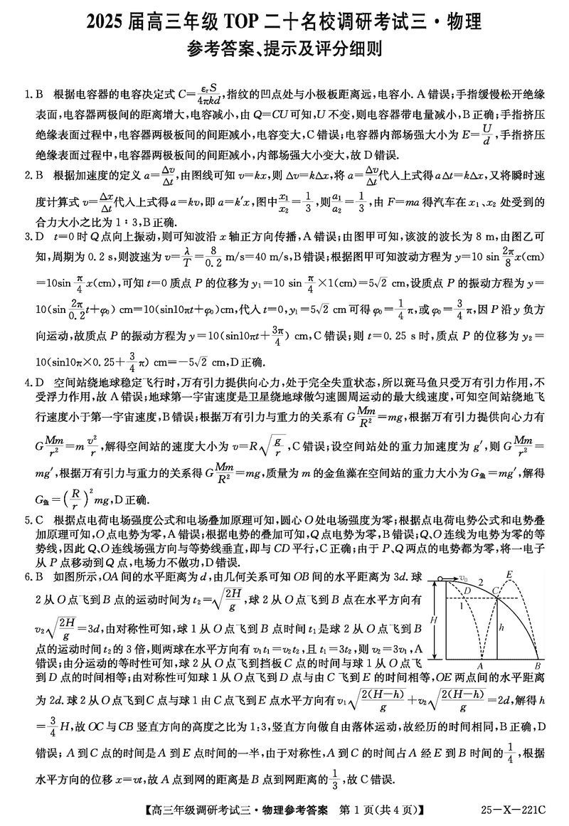 河南省TOP二十名校2025届高三上学期调研(三)物理考试已于近日开考,为方便考生考后及时查看考试情况,查漏补缺、弥补不足,本文整理了试题答案解析相关信息!