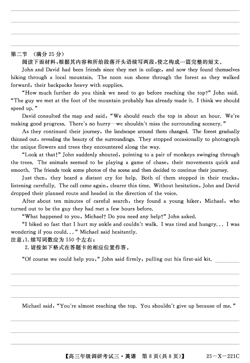河南省TOP二十名校2025届高三上学期调研(三)英语试题及答案