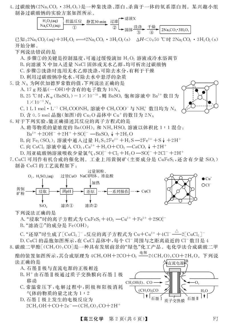 福建省金科大联考2024-2025学年高三12月测评化学考试已于近日开考,为方便考生考后及时查看考试情况,查漏补缺、弥补不足,本文整理了试题答案解析相关信息!