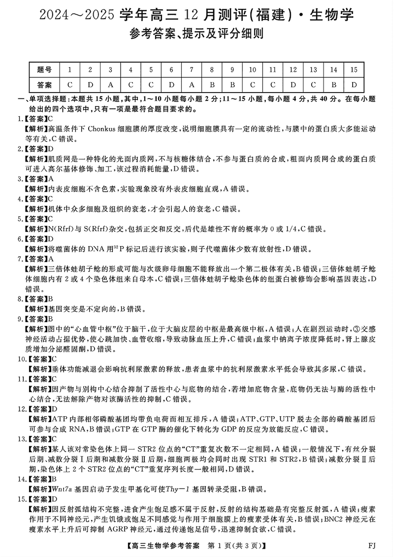 福建省金科大联考2024-2025学年高三12月测评生物考试已于近日开考,为方便考生考后及时查看考试情况,查漏补缺、弥补不足,本文整理了试题答案解析相关信息!