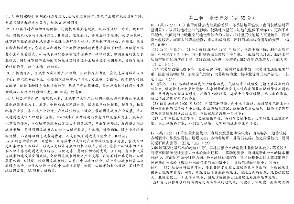 山东中学联盟百校大联考2025届高三上12月学情诊断地理试题及答案
