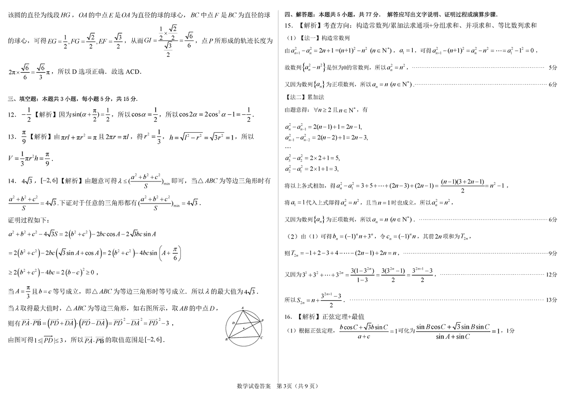 数学试题及答案解析