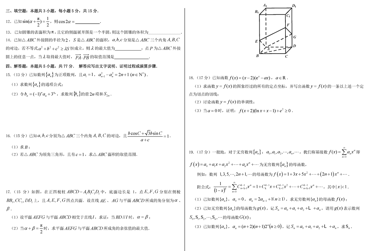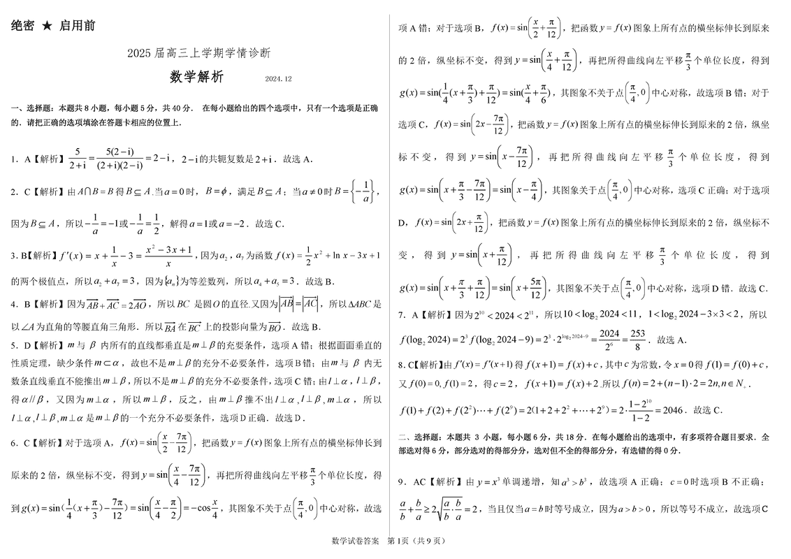 山东中学联盟百校大联考2025届高三上12月学情诊断数学试题及答案
