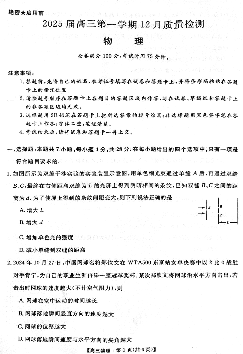 河南省金科大联考2025届高三12月联考物理考试已于近日开考,为方便考生考后及时查看考试情况,查漏补缺、弥补不足,本文整理了试题答案解析相关信息!