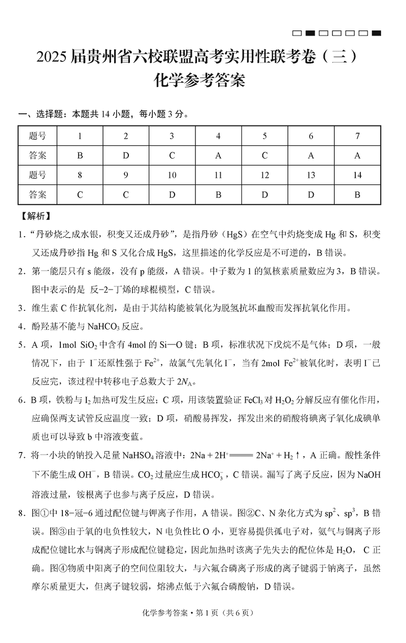 贵州六校联盟2025届高三12月实用性联考(三)化学考试已于近日开考,为方便考生考后及时查看考试情况,查漏补缺、弥补不足,本文整理了试题答案解析相关信息!