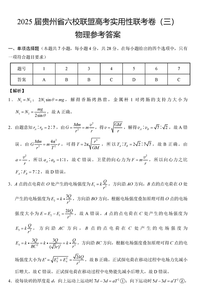 贵州六校联盟2025届高三12月实用性联考(三)物理考试已于近日开考,为方便考生考后及时查看考试情况,查漏补缺、弥补不足,本文整理了试题答案解析相关信息!