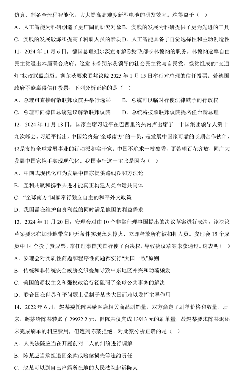 江苏新高考基地学校2025届高三12月第一次大联考政治试题及答案