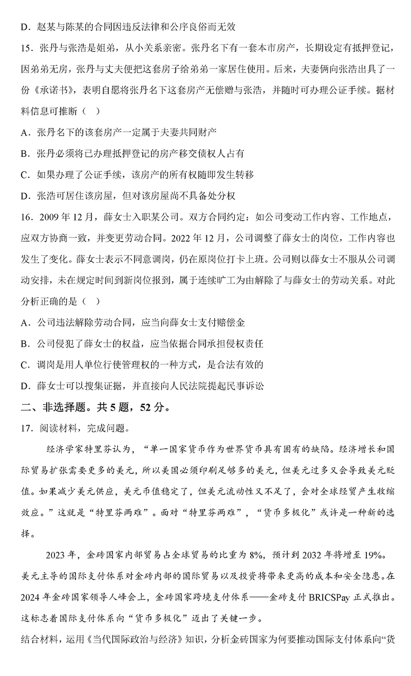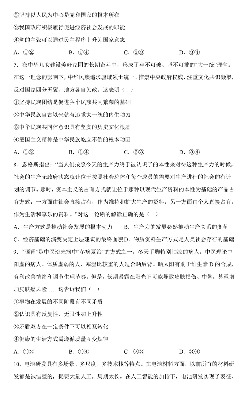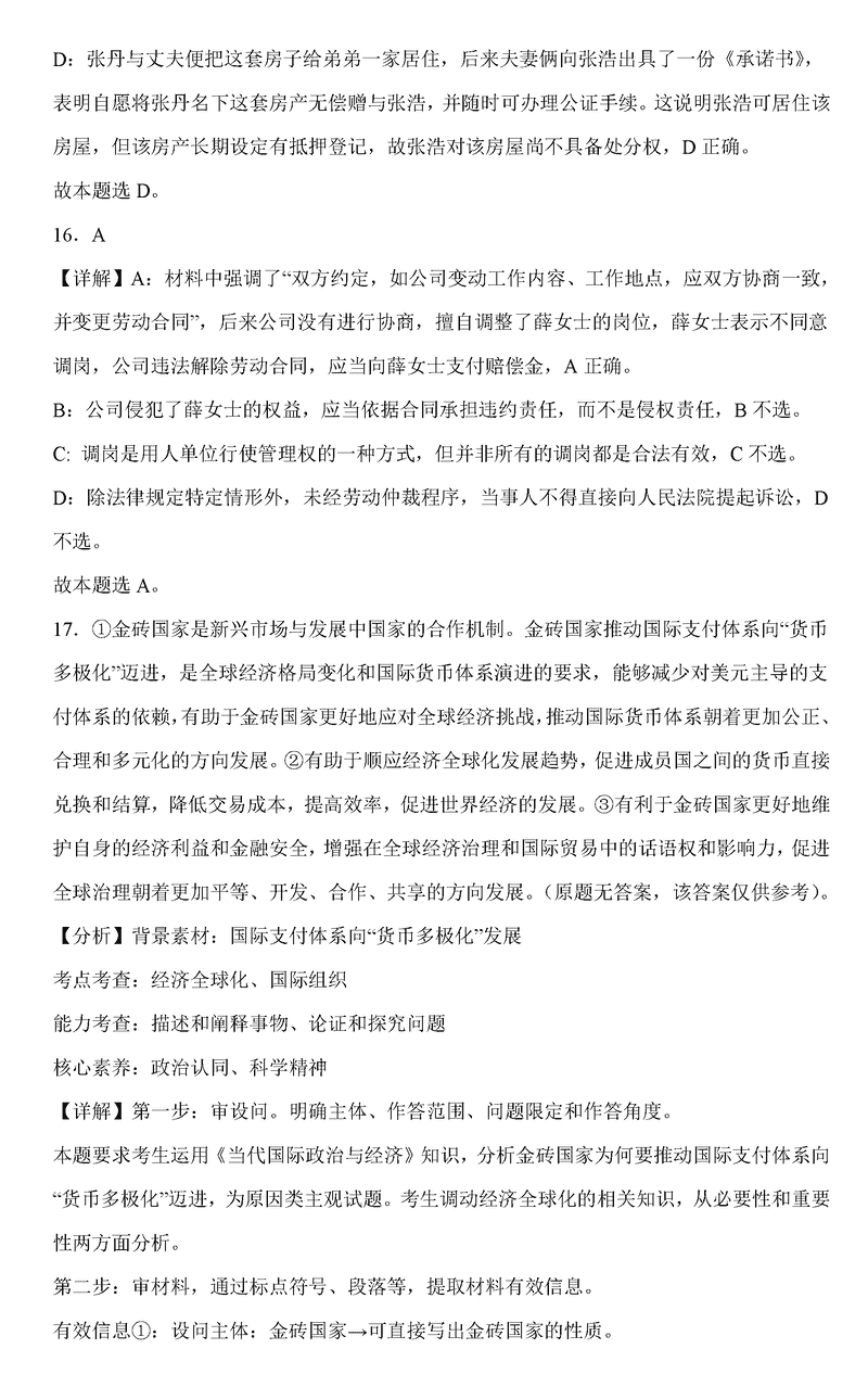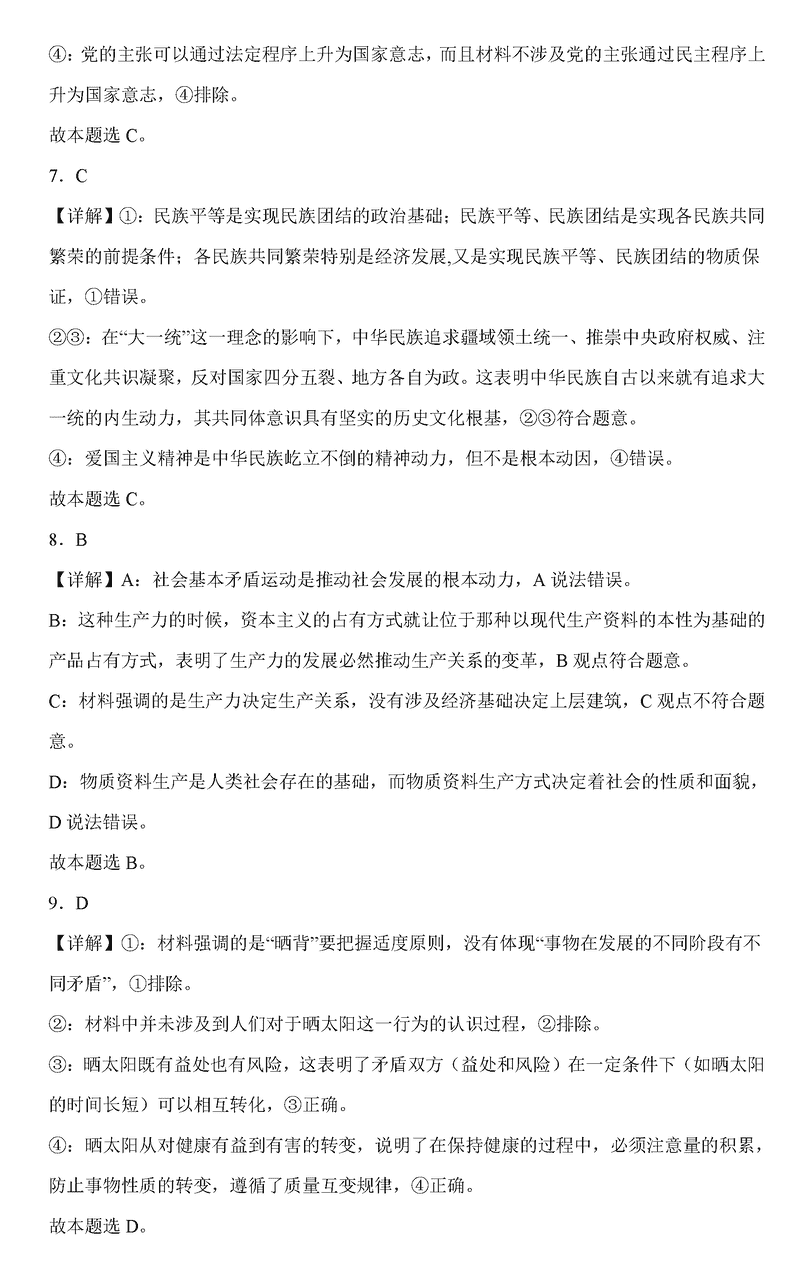 政治试题及答案解析