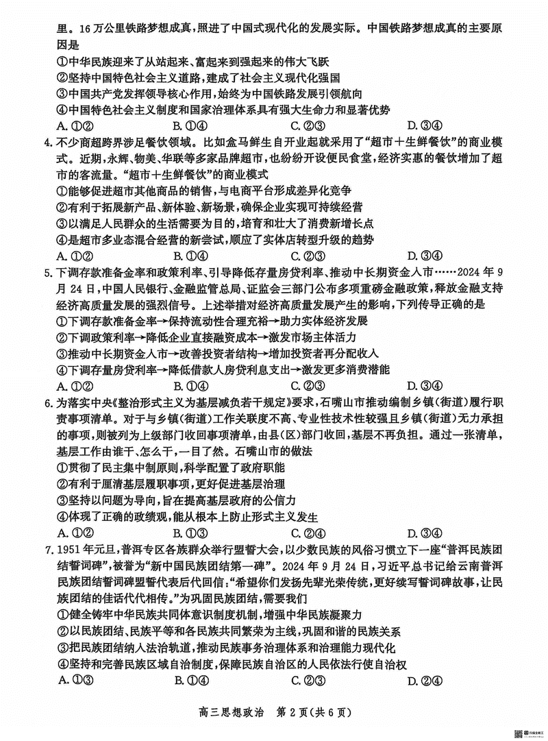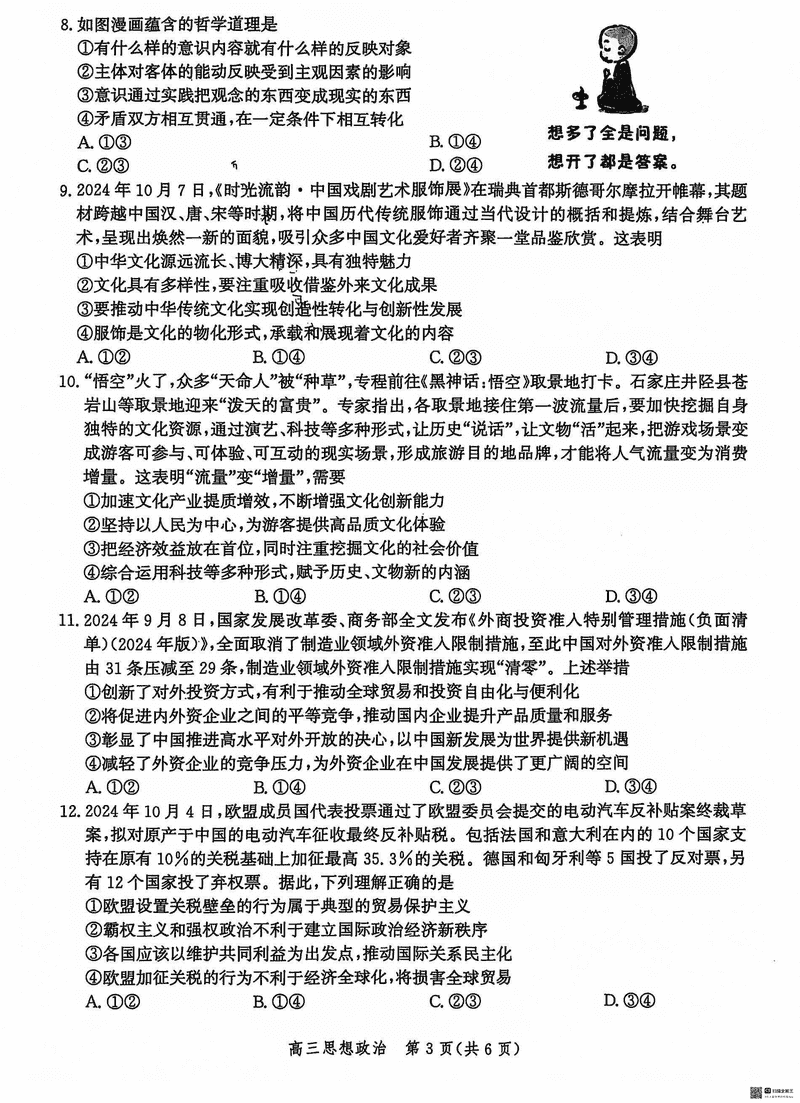 沧州市普通高中2025届高三12月教学质量监测政治试题及答案