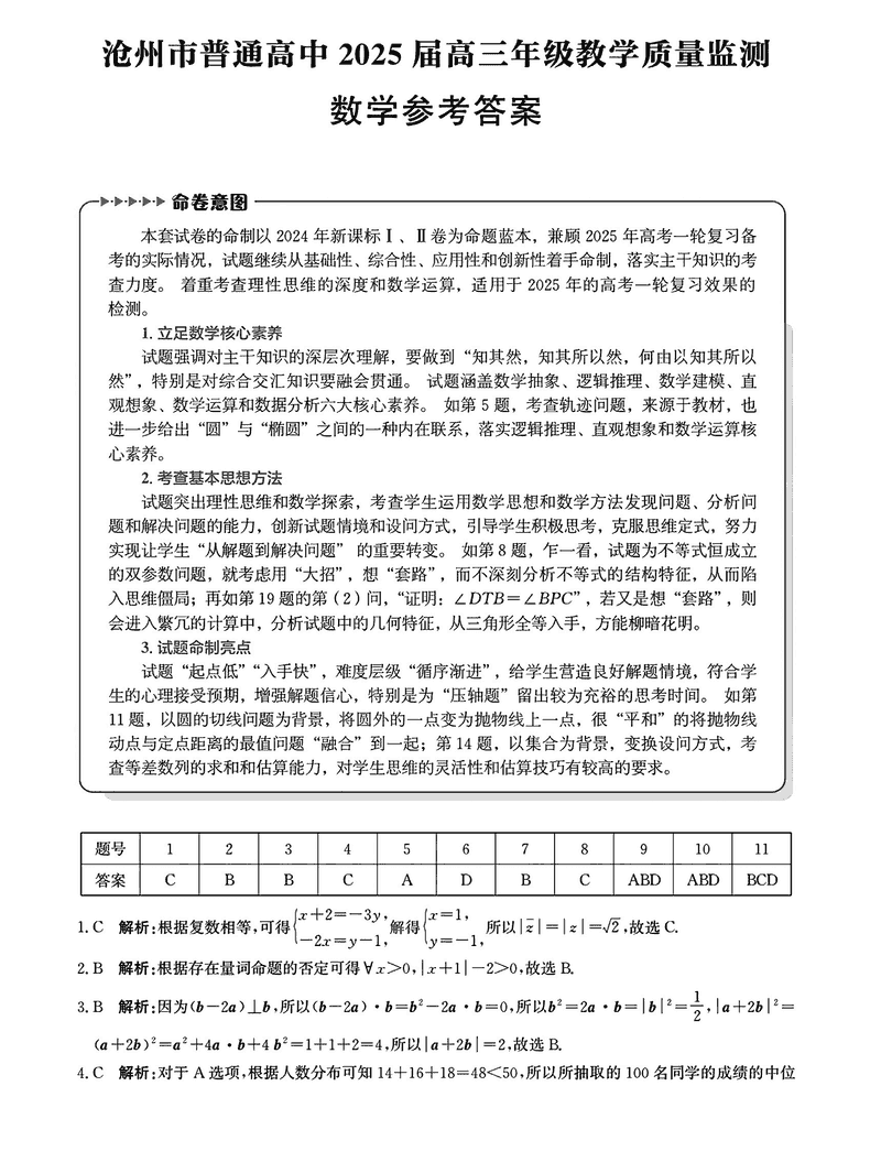 沧州市普通高中2025届高三12月教学质量监测数学考试已于近日开考,为方便考生考后及时查看考试情况,查漏补缺、弥补不足,本文整理了试题答案解析相关信息!
