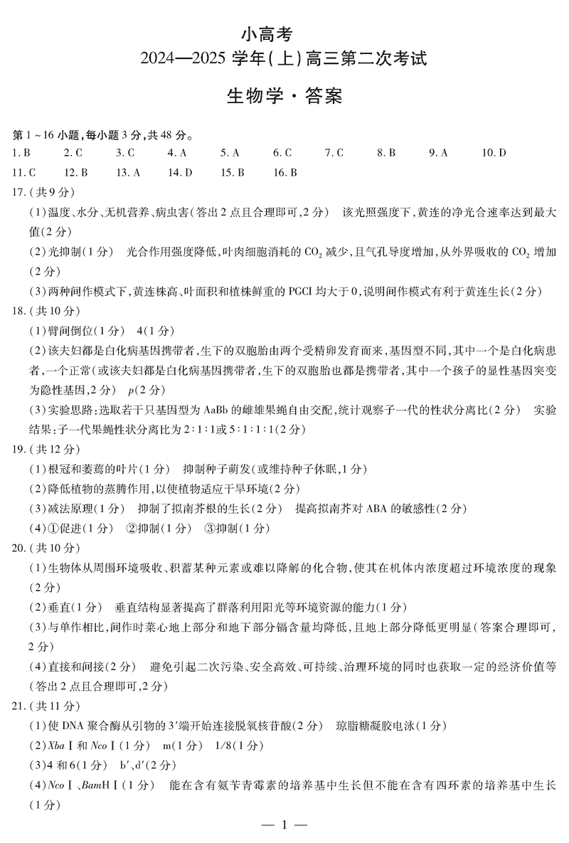 河南省天一小高考2025届高三第二次考试生物考试已于近日开考,为方便考生考后及时查看考试情况,查漏补缺、弥补不足,本文整理了试题答案解析相关信息!