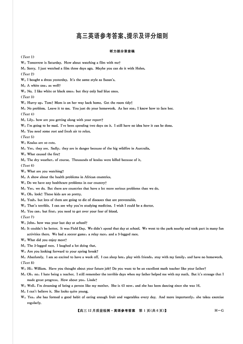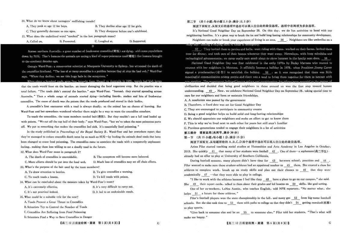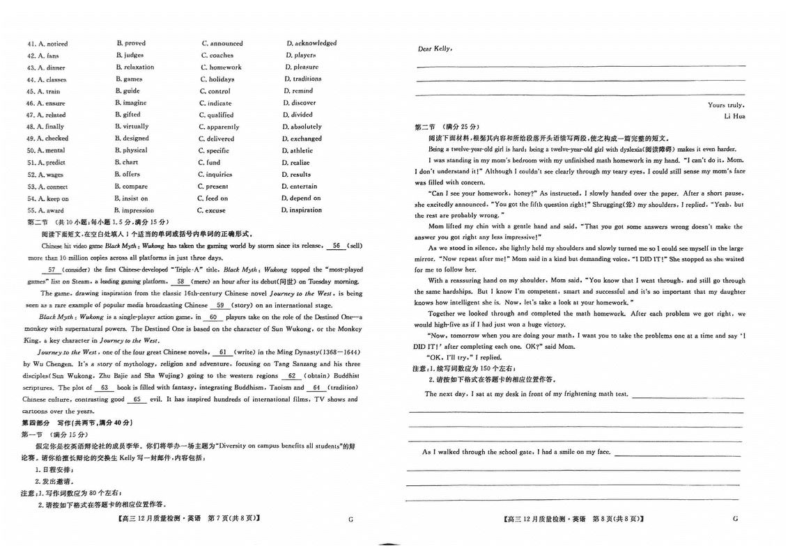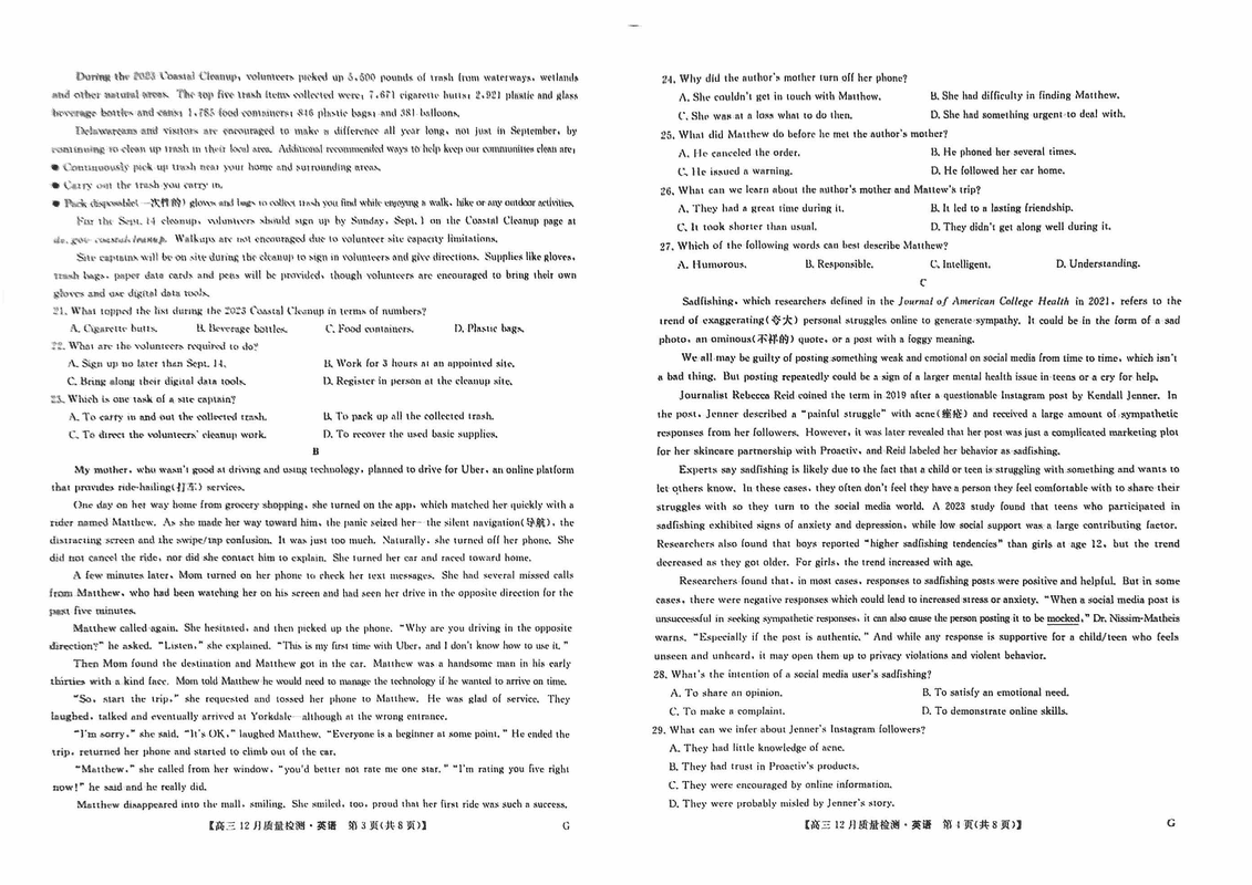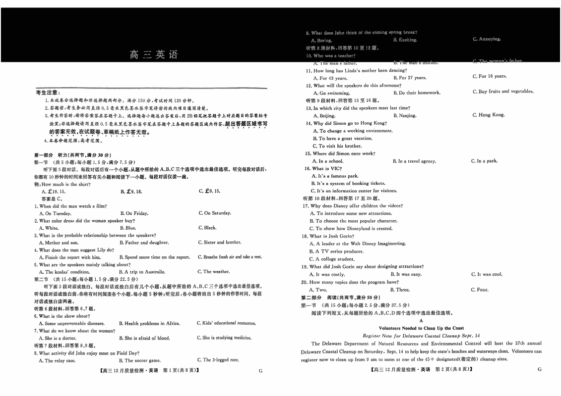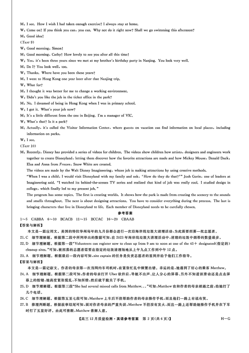 2025届九师联盟高三12月质量检测联考英语试题及答案
