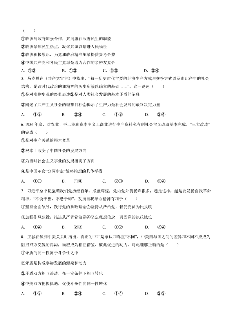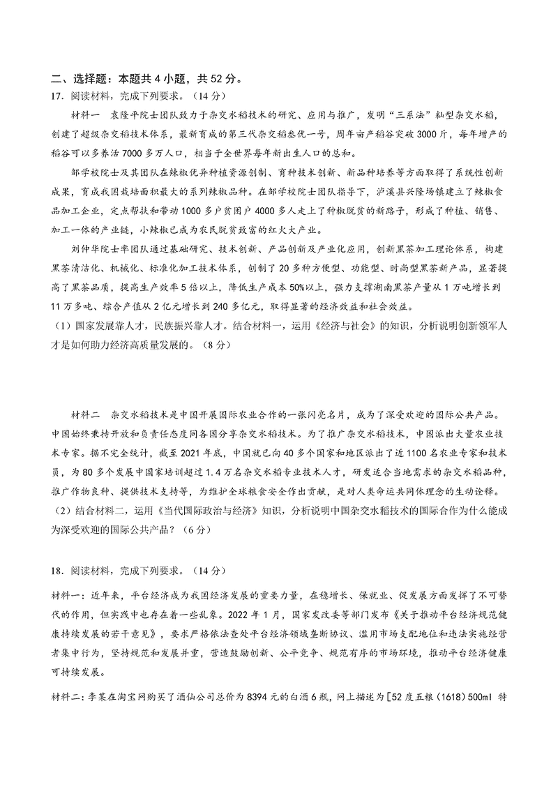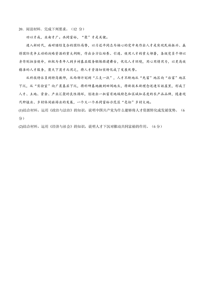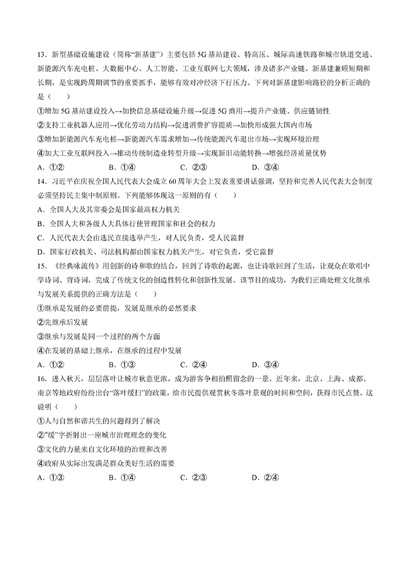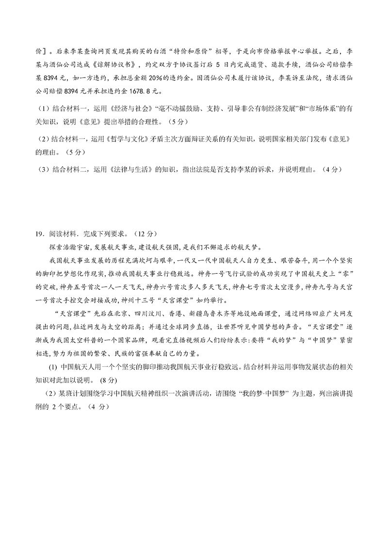 兰州一中2024-2025学年高三上第三次诊断政治试题及答案