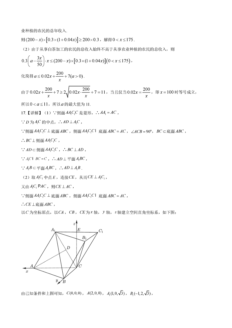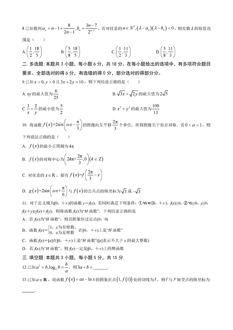 兰州一中2024-2025学年高三上第三次诊断数学试题及答案