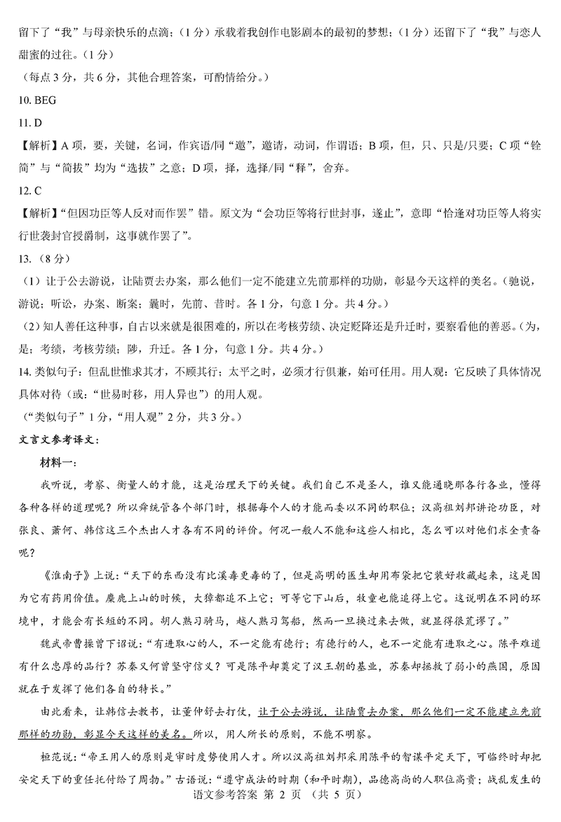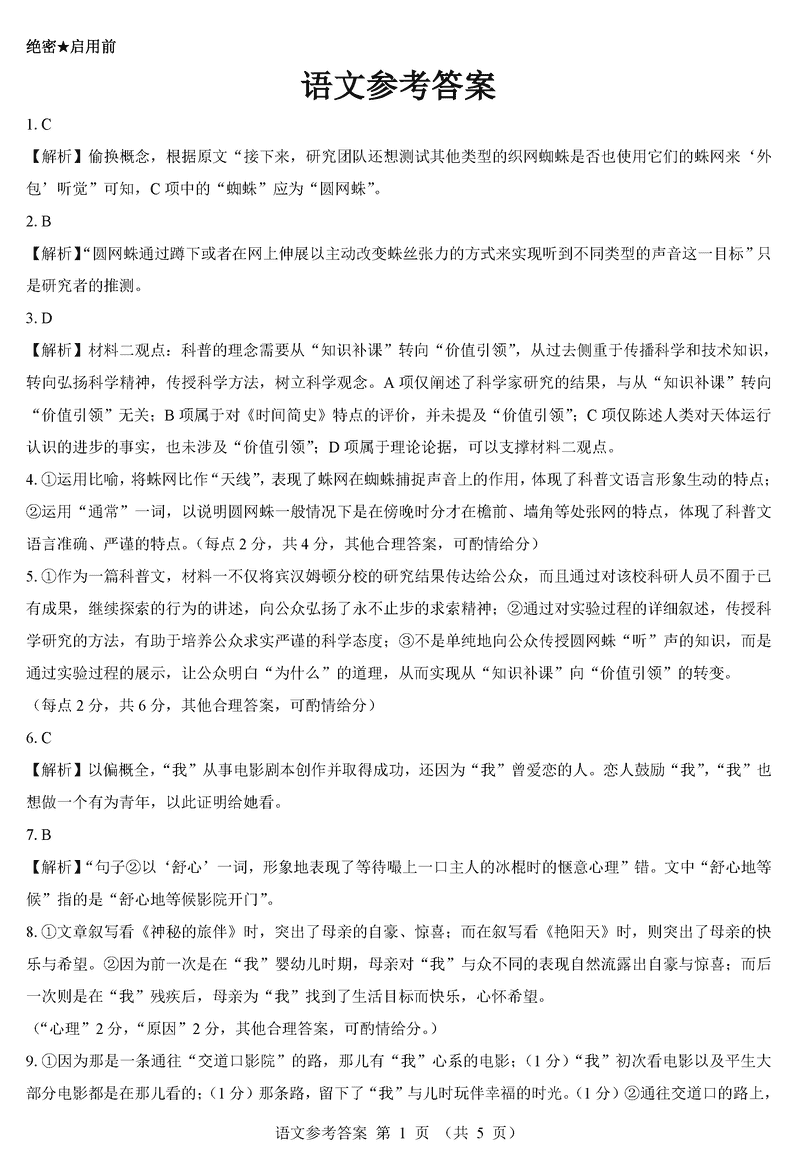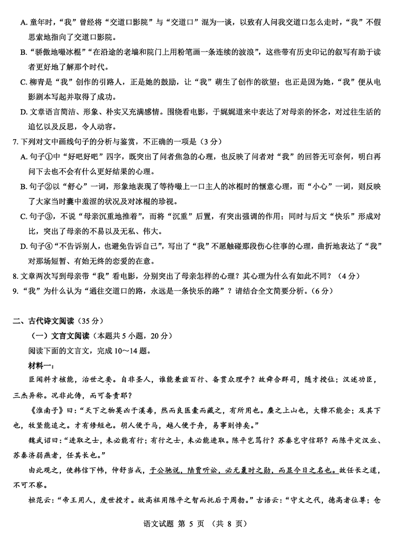 语文试题及答案解析