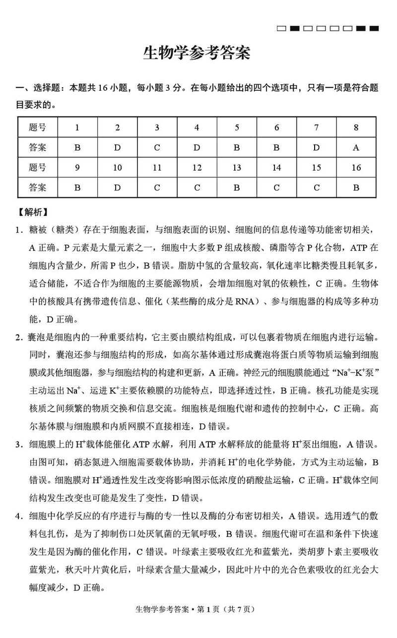云南师大附中2025届高三12月适应性月考卷(七)生物考试已于近日开考,为方便考生考后及时查看考试情况,查漏补缺、弥补不足,本文整理了试题答案解析相关信息!