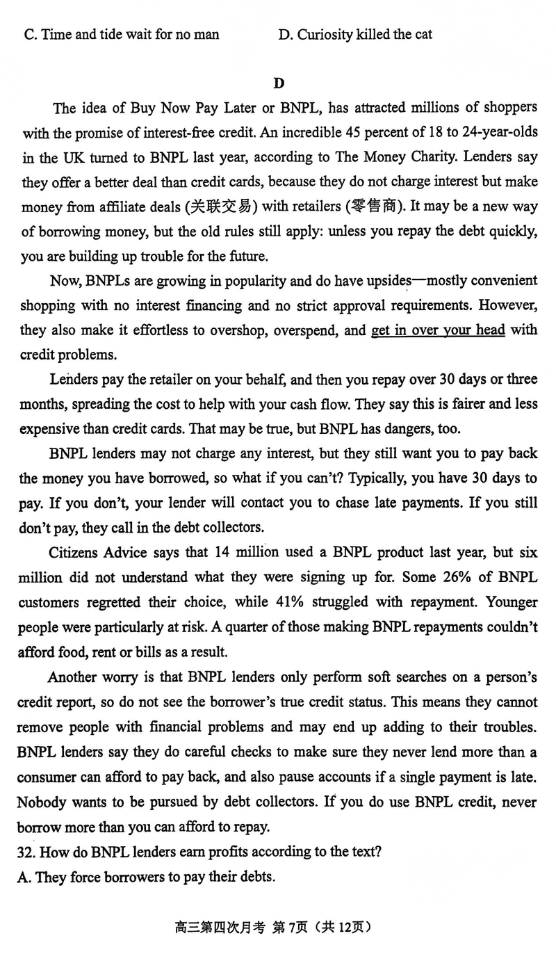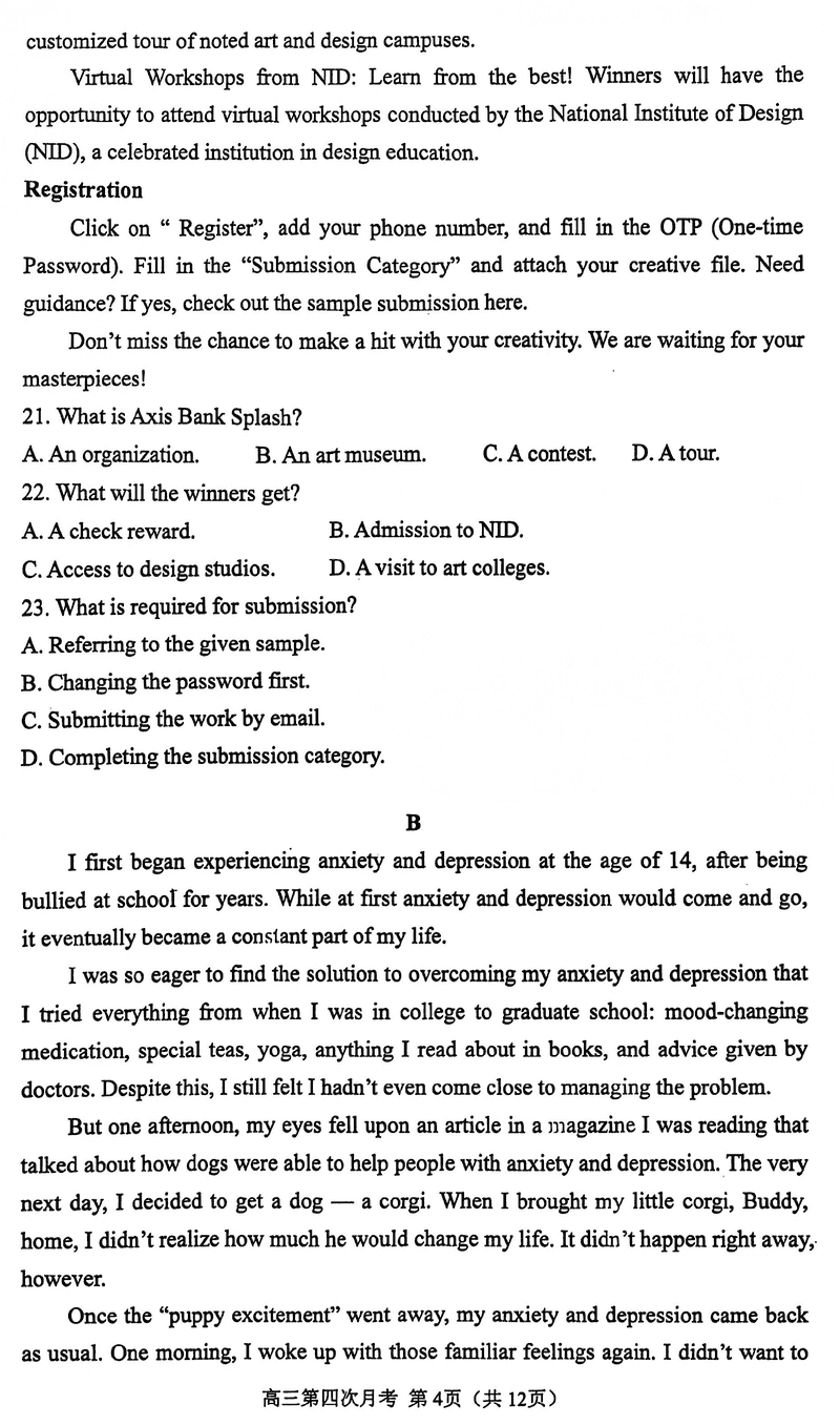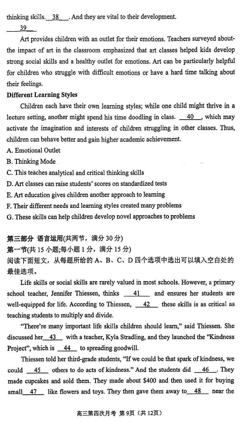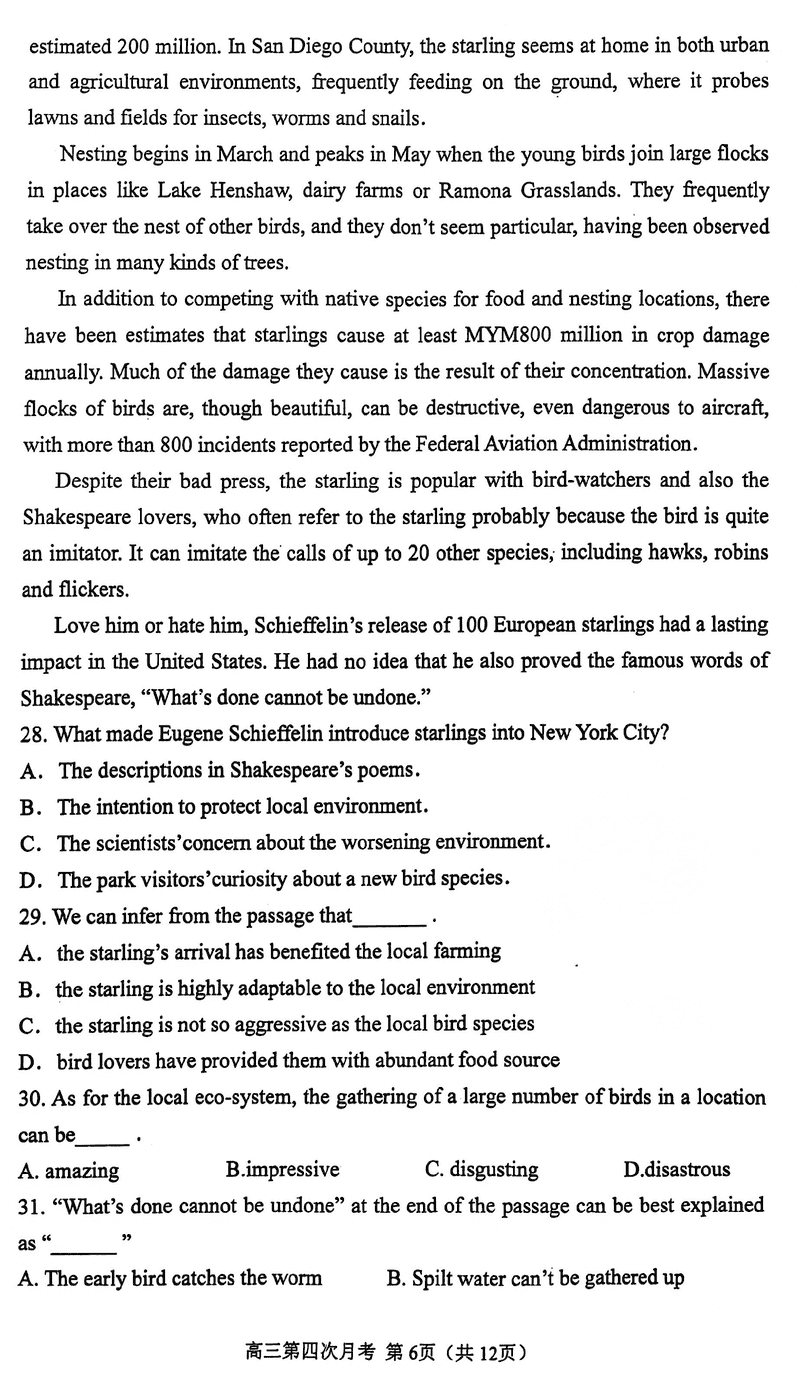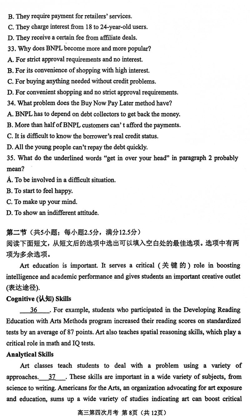 安徽六安二中2025届高三上学期12月第四次月考英语考试已于近日开考,为方便考生考后及时查看考试情况,查漏补缺、弥补不足,本文整理了试题答案解析相关信息!