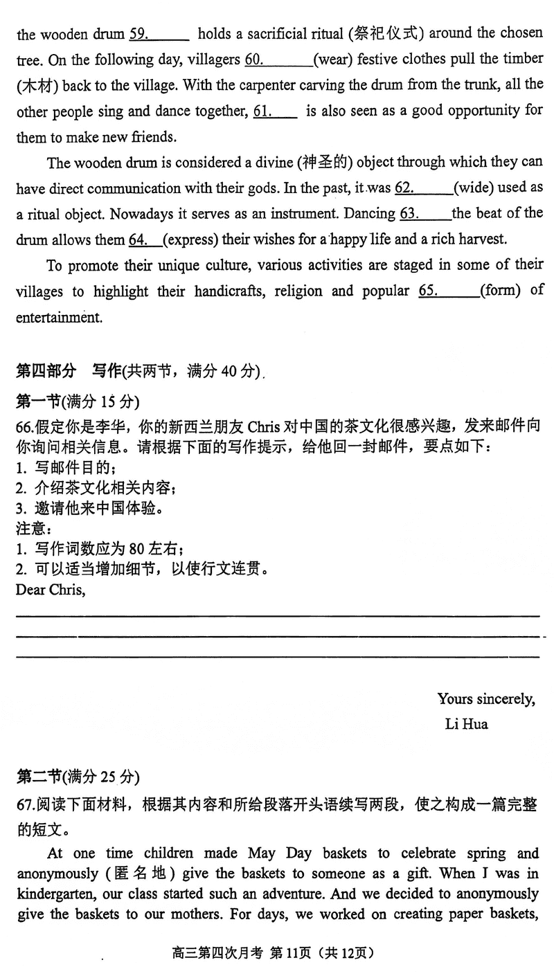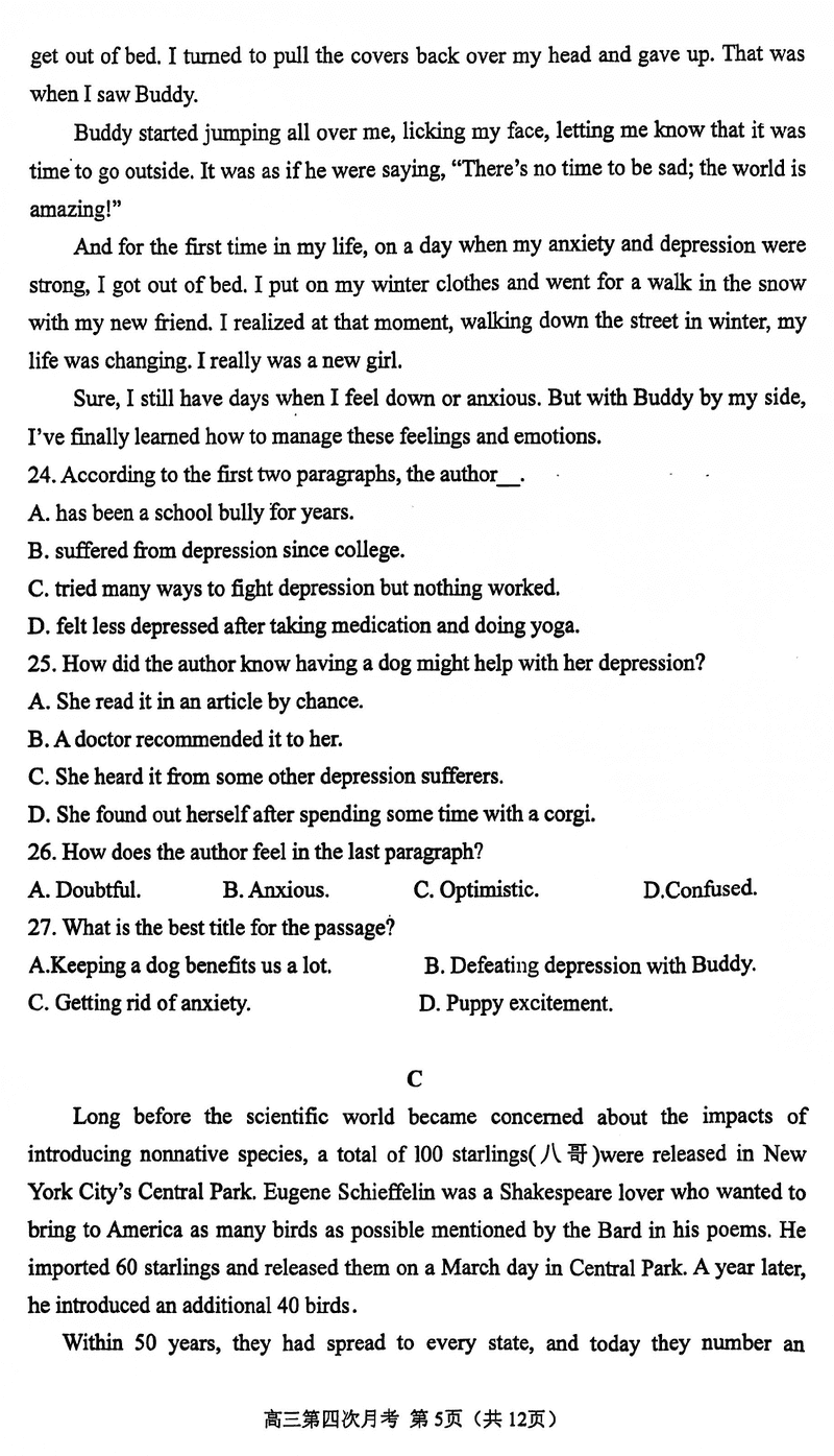 六安二中2025届高三上学期12月第四次月考英语试题及答案