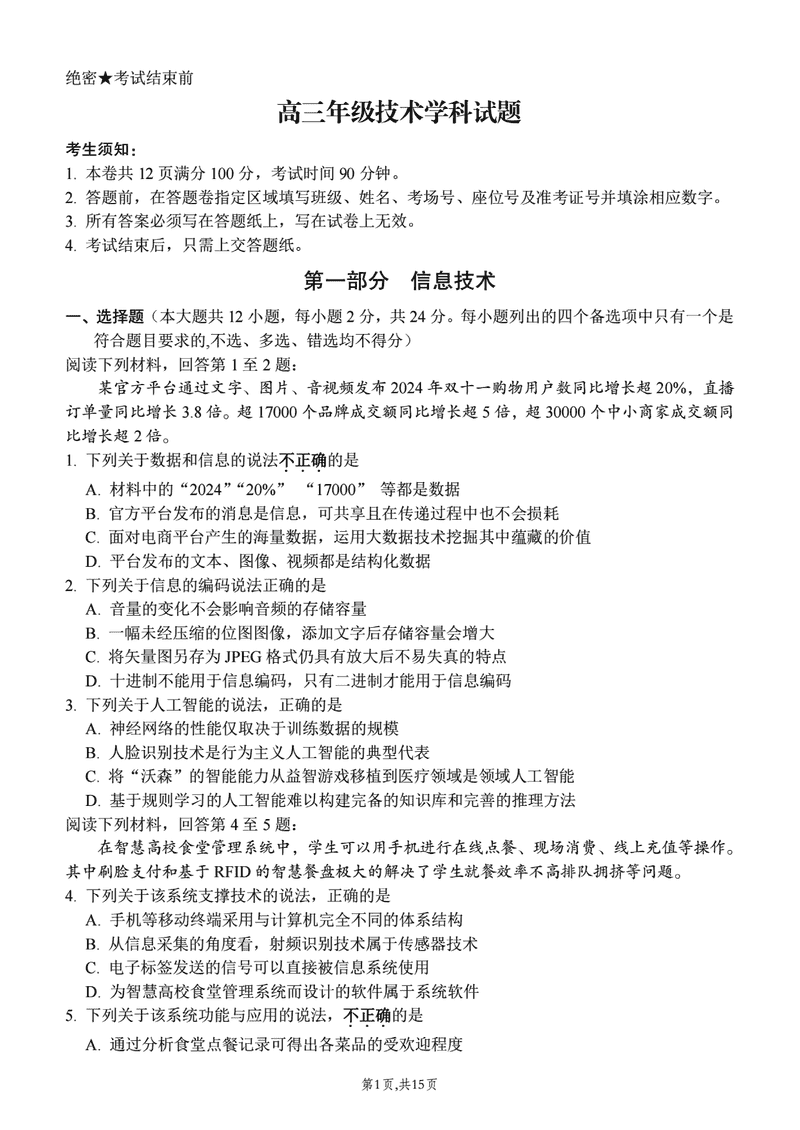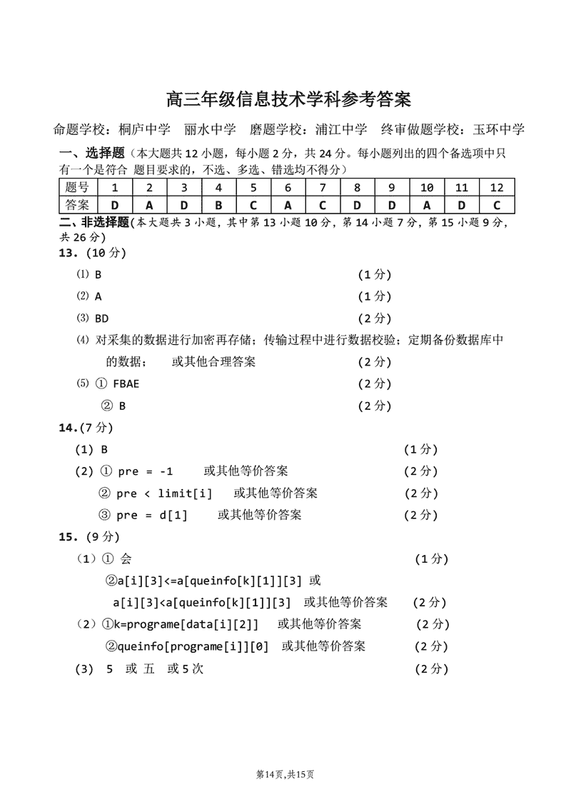 浙江北斗星盟2024年高三上学期12月月考技术考试已于近日开考,为方便考生考后及时查看考试情况,查漏补缺、弥补不足,本文整理了试题答案解析相关信息!