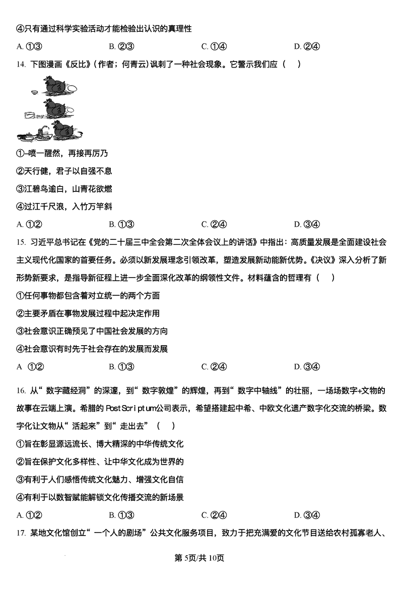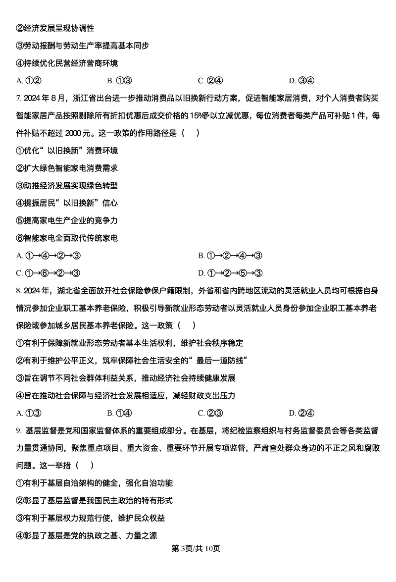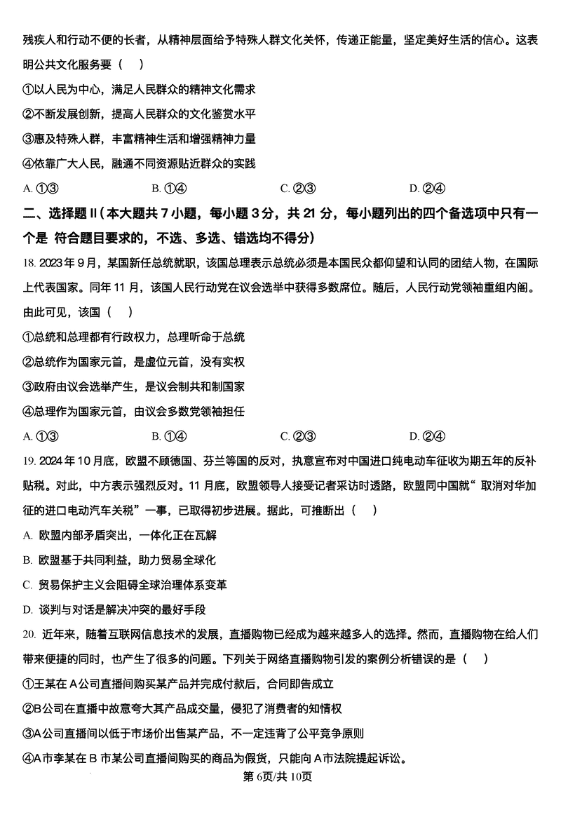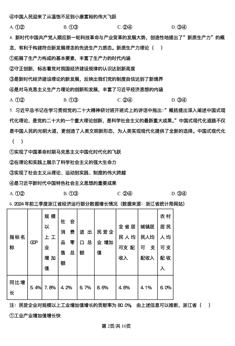 浙江北斗星盟2024年高三上学期12月月考政治试题及答案