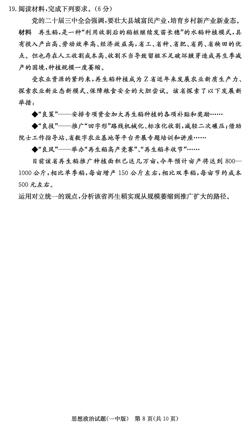 长沙市一中2025届高三月考试卷(四)政治试题及答案 时间:2024-12-30 湖南 文综试题 长沙市一中2025届高三月考试卷(四)政治考试已于近日开考,为方便考生考后及时查看考试情况,查漏补缺、弥补不足,本文整理了试题答案解析相关信息! 汇总:长沙市一中2025届高三月考试卷(四)试题及答案汇总 政治试题及答案解析