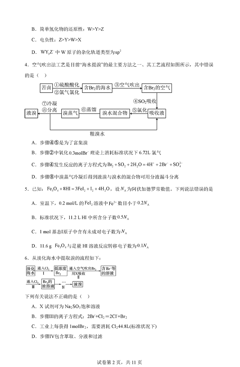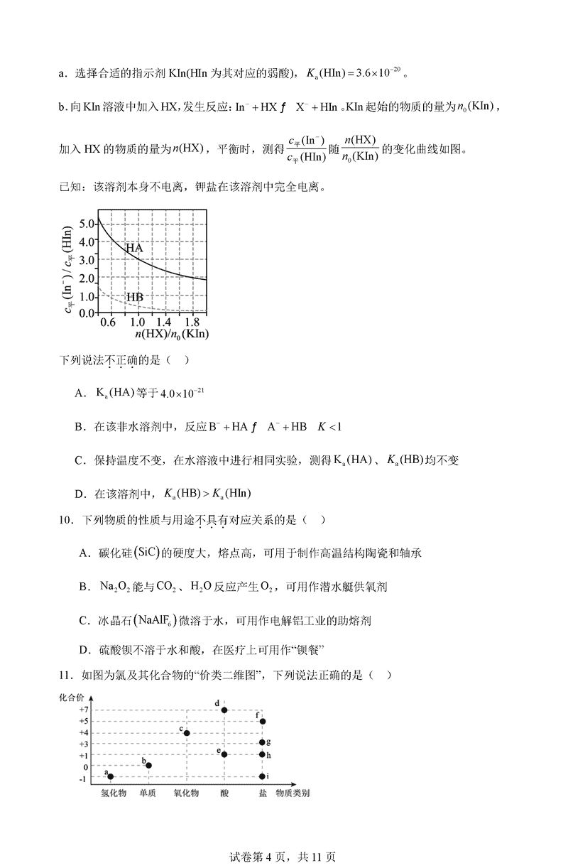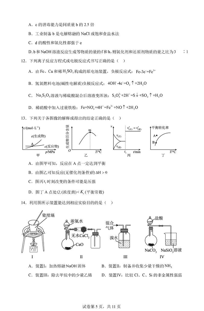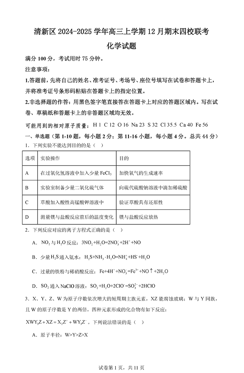 清远市清新区四校联考22025届高三上12月期末化学试题及答案