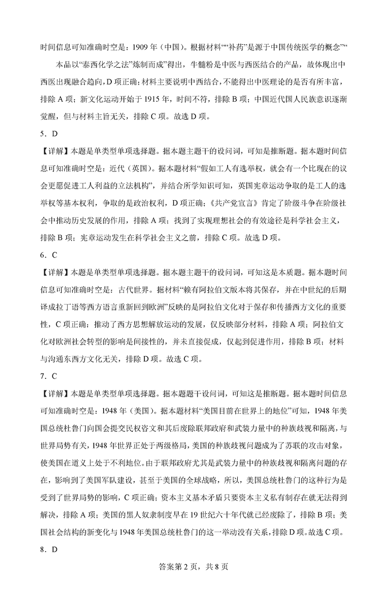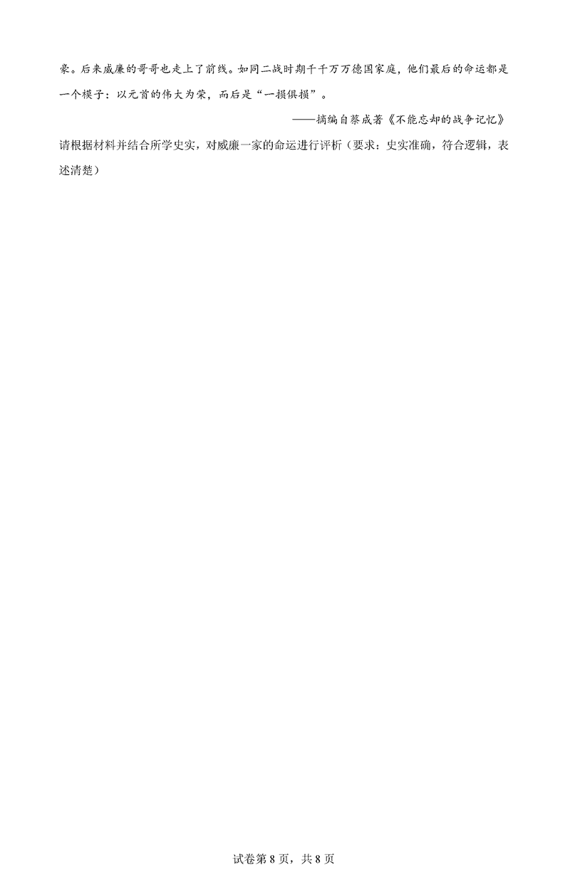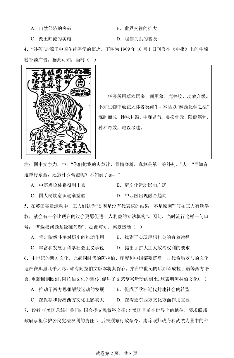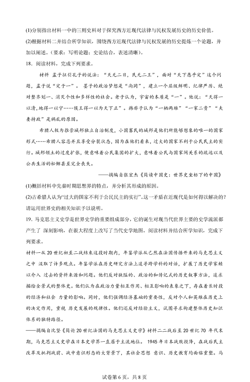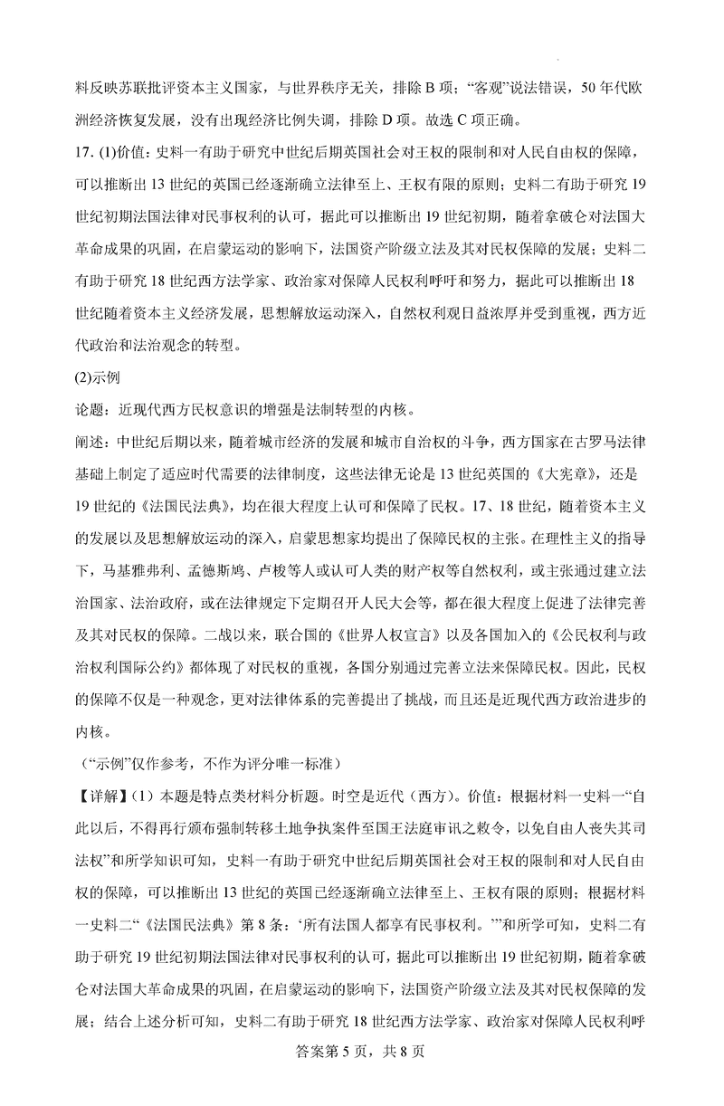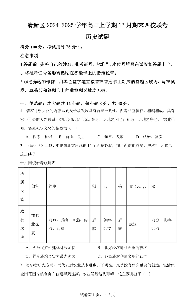 清远市清新区四校联考22025届高三上12月期末历史试题及答案