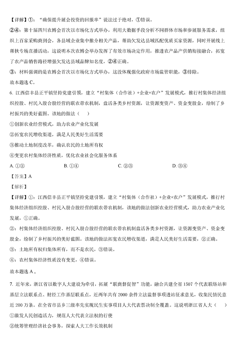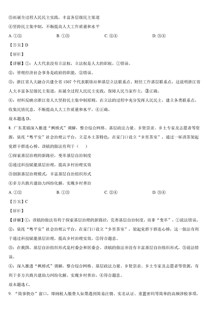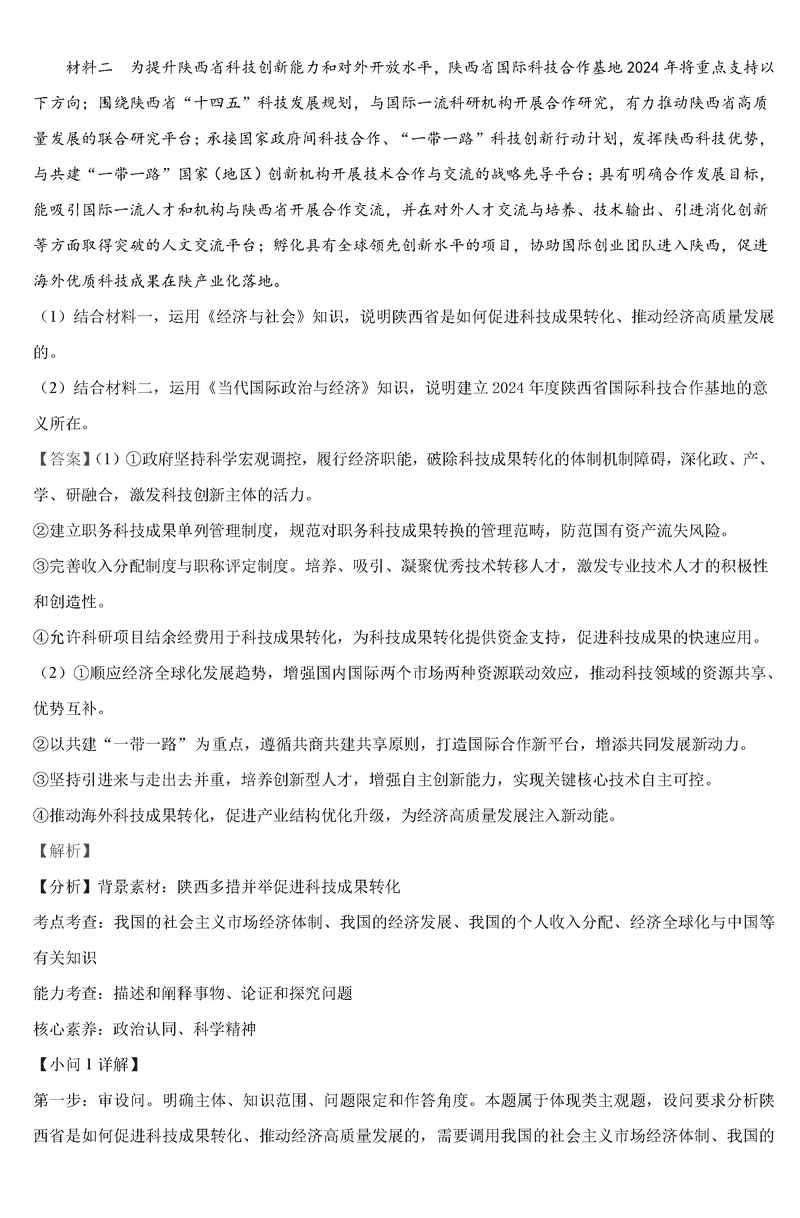 政治试题及答案解析