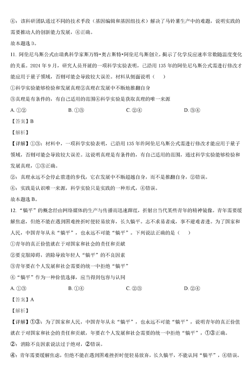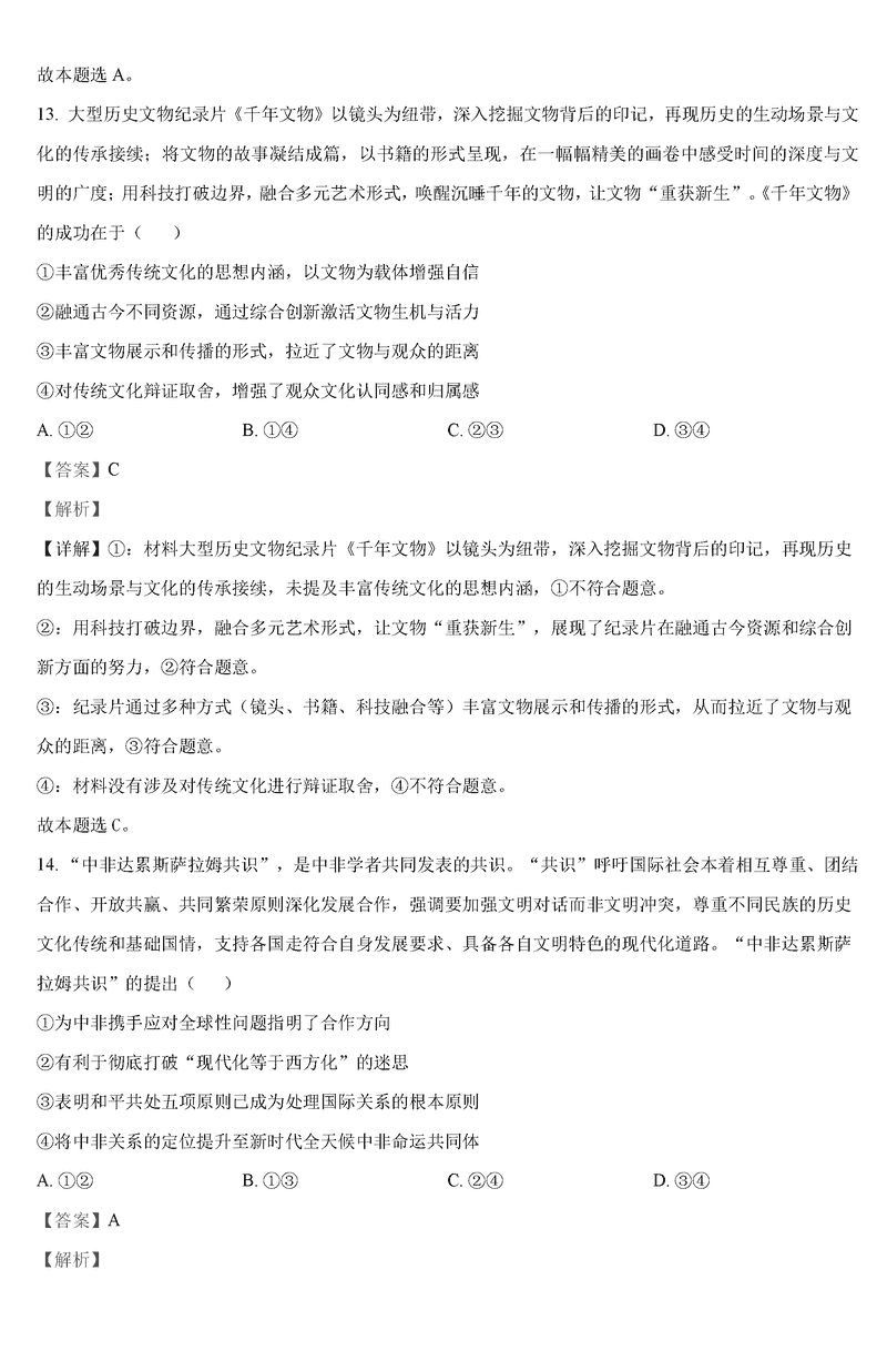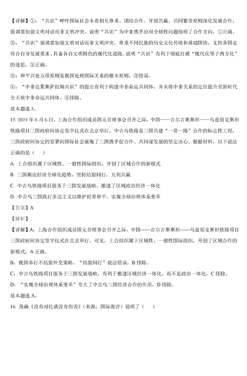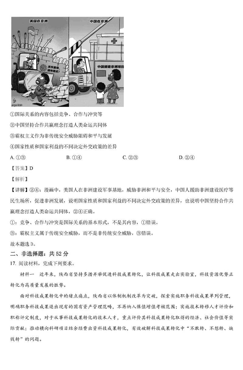 政治试题及答案解析